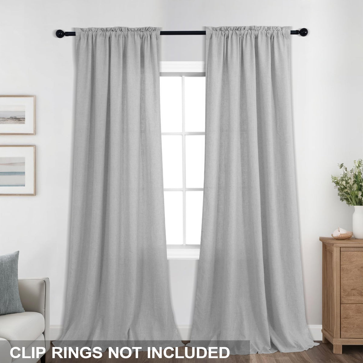 Koufall Grey Rod Pocket 52X96 Inches Long Linen Blend Sheer Curtains For Bedroom
