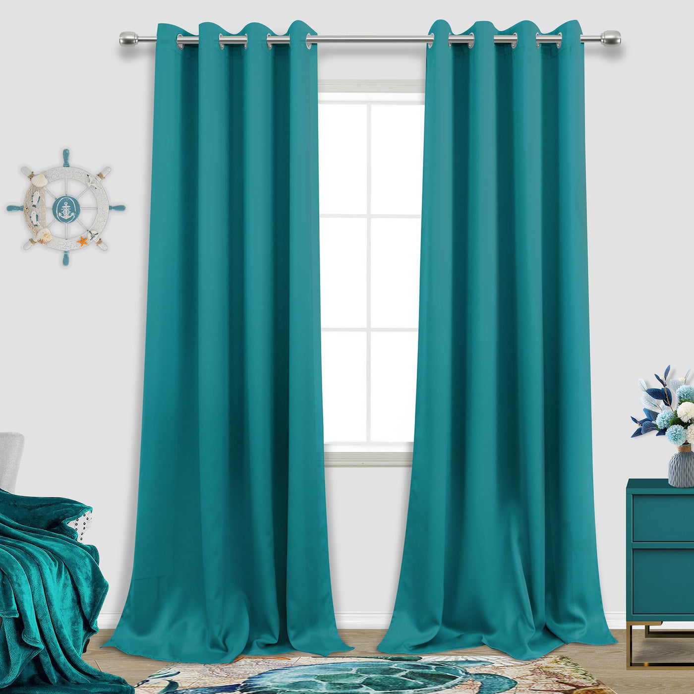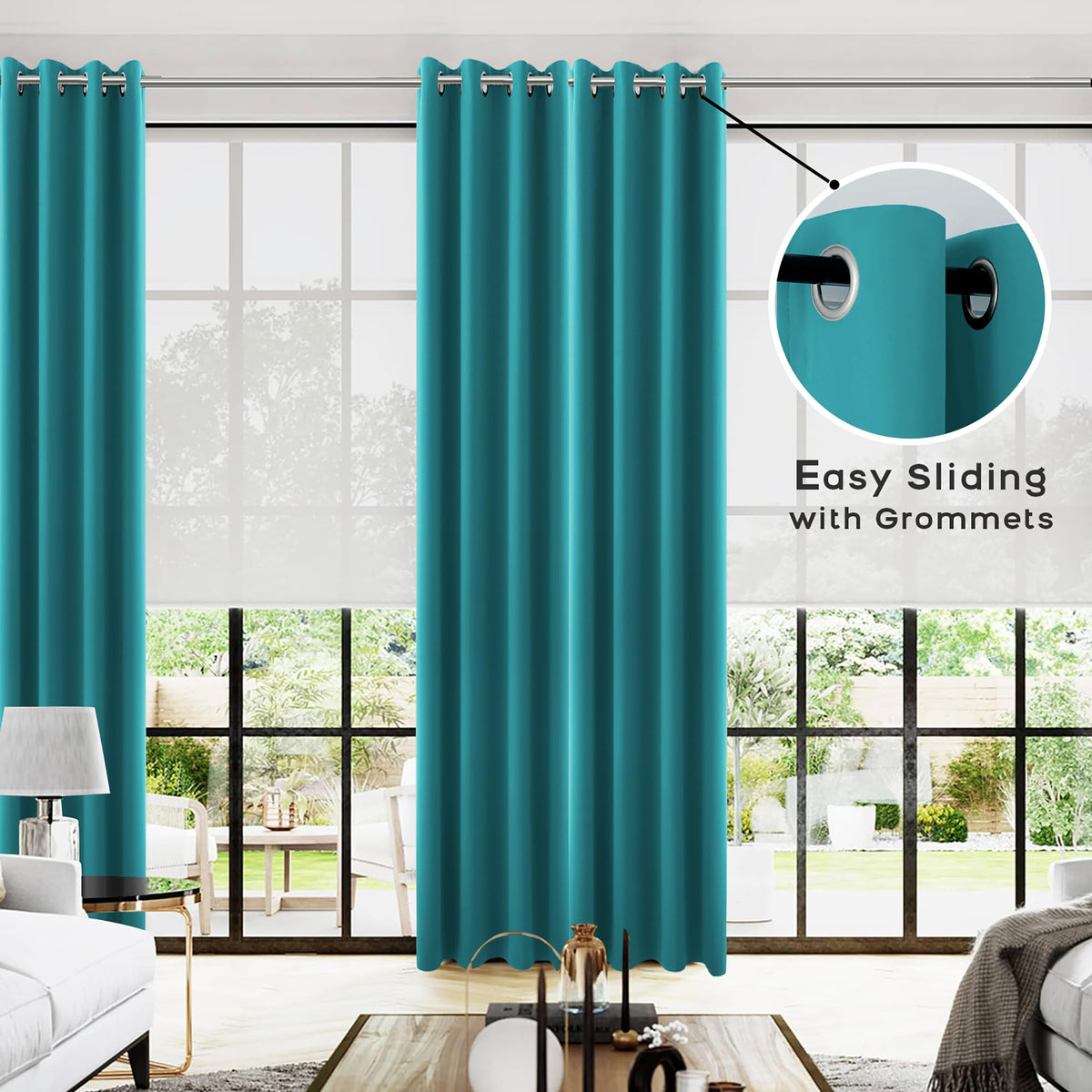 Koufall Grommet Blackout Extra Long Curtains,Block Sun Heat Thermal Insulated Curtains For Living Room Buildings,52W By 108 Inches Long,Teal