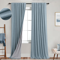 Koufall Light Blue Blackout 96 Inch Curtains 2 Panel Set,Linen Textured Black Out Room Darkening Back Tab Pleated Extra Long Cur