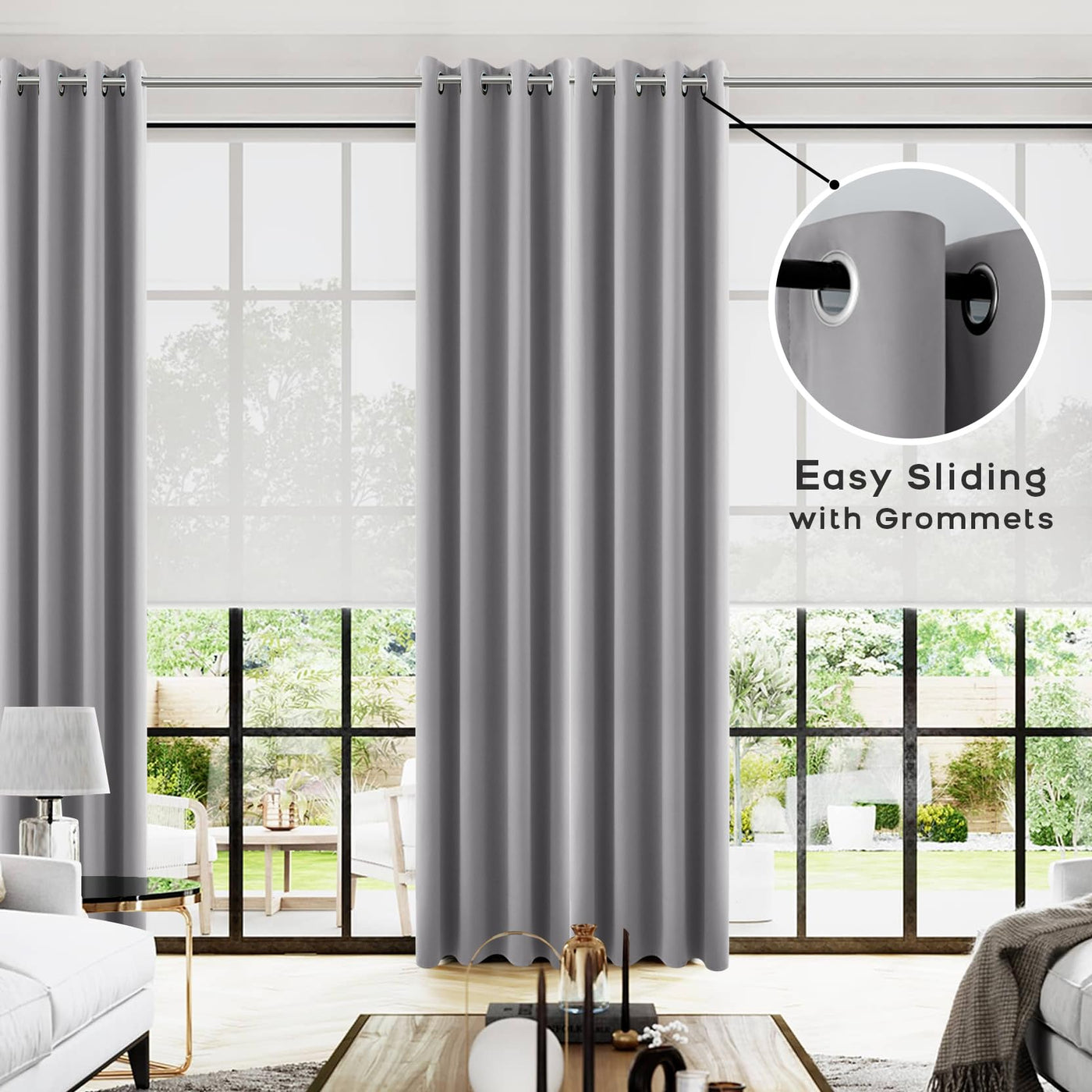 Q: Are the grommets suitable for standard curtain rods?A: Yes, the curtains feature 1.6-inch inter-diameter round silver grommets, making them compatible with most standard decorative curtain rods for easy hanging.