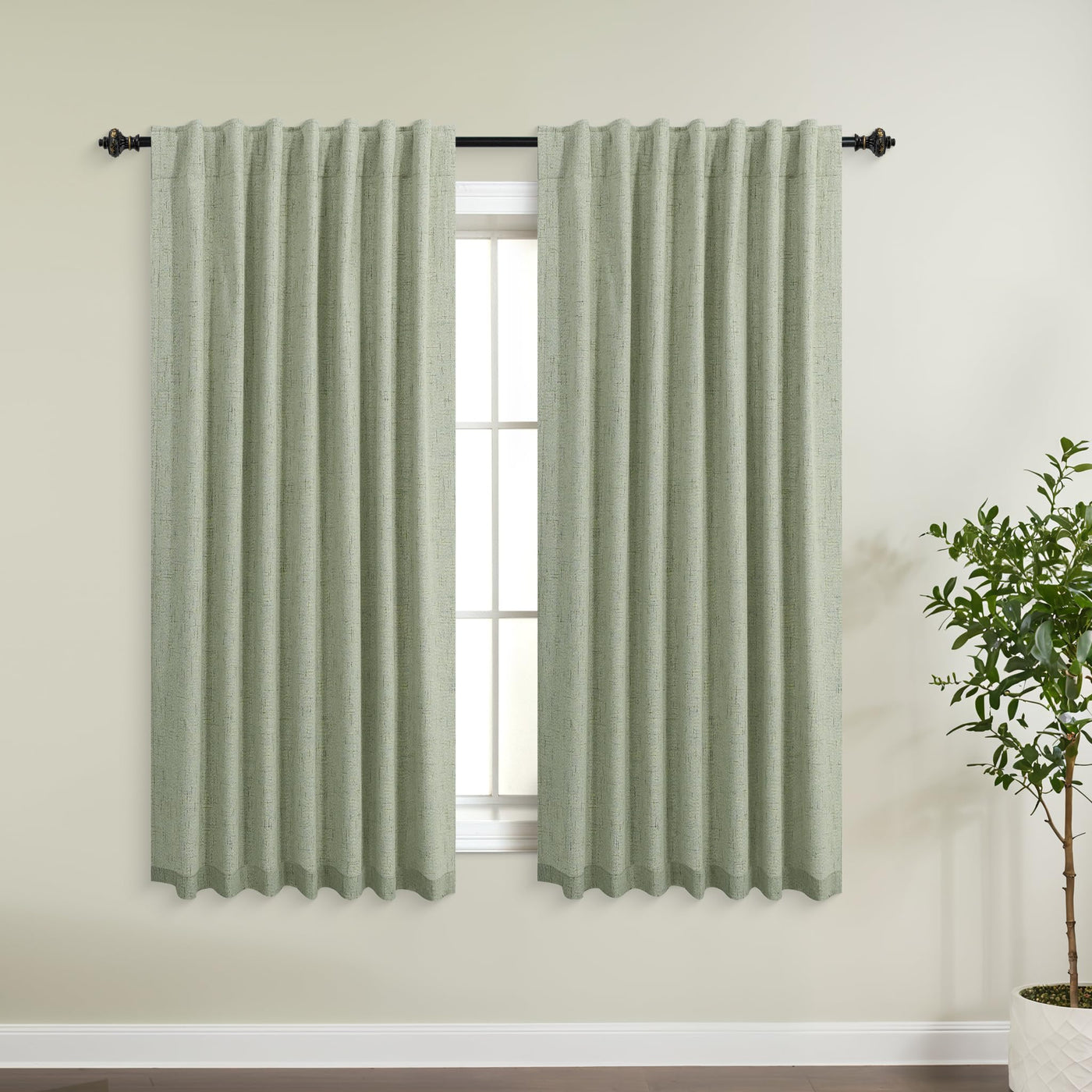 Koufall Light Sage Back Tab Linen Blackout Curtains 52 By 45 For Bedroom
