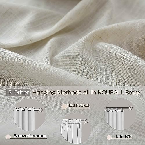 Koufall Linen Back Tab Rod Pocket Linen Sheer Curtains For Living Room 52X102 Inches Long