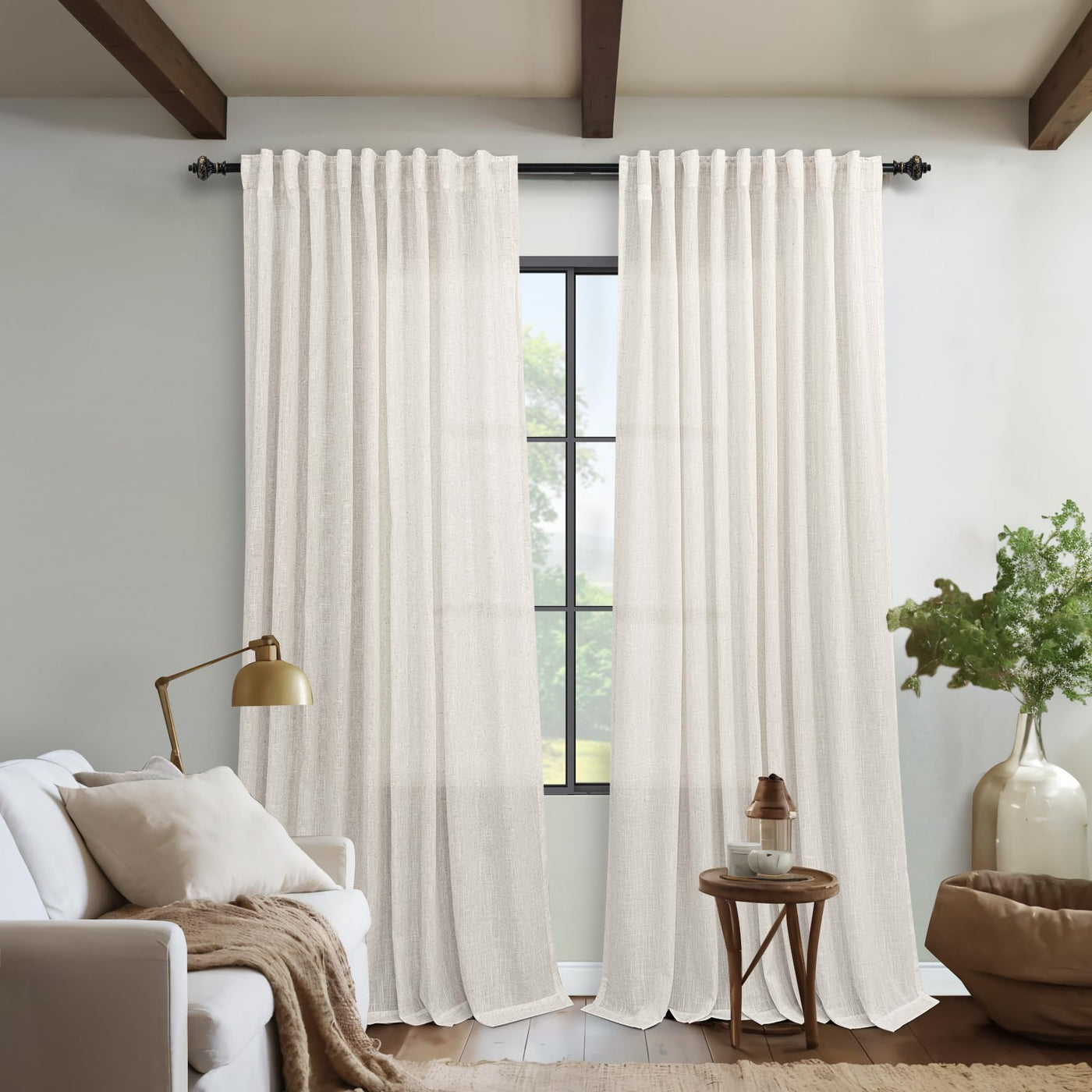 Koufall Linen Back Tab Rod Pocket Linen Sheer Curtains For Living Room 72 By 90 Inch Length