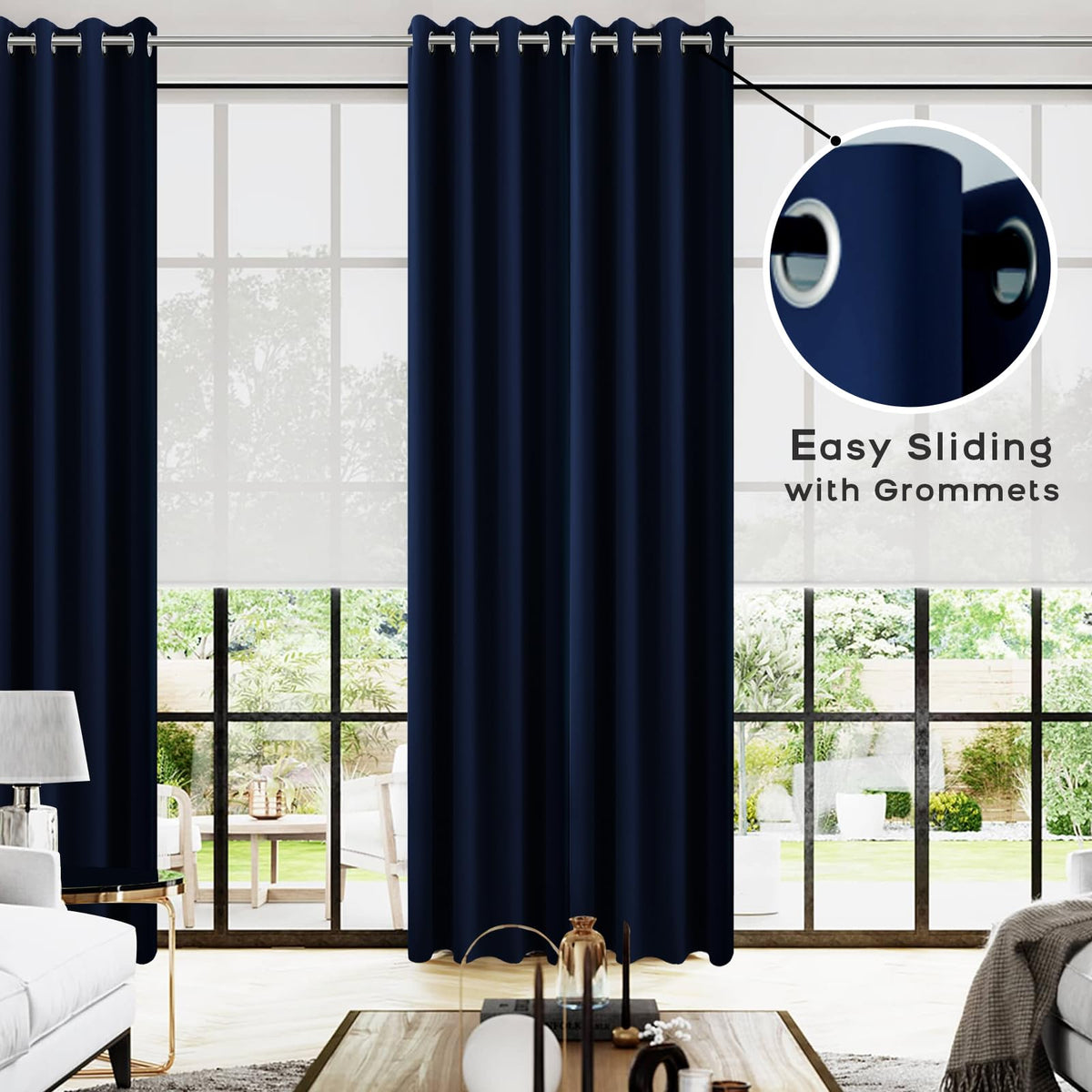 Koufall Navy Blue Curtains 102 Inches Long For Livingroom,2 Panels Grommet Sun Heat Light Blocking Curtains For Bedroom Dining Room,8.5 Ft,Dark Blue
