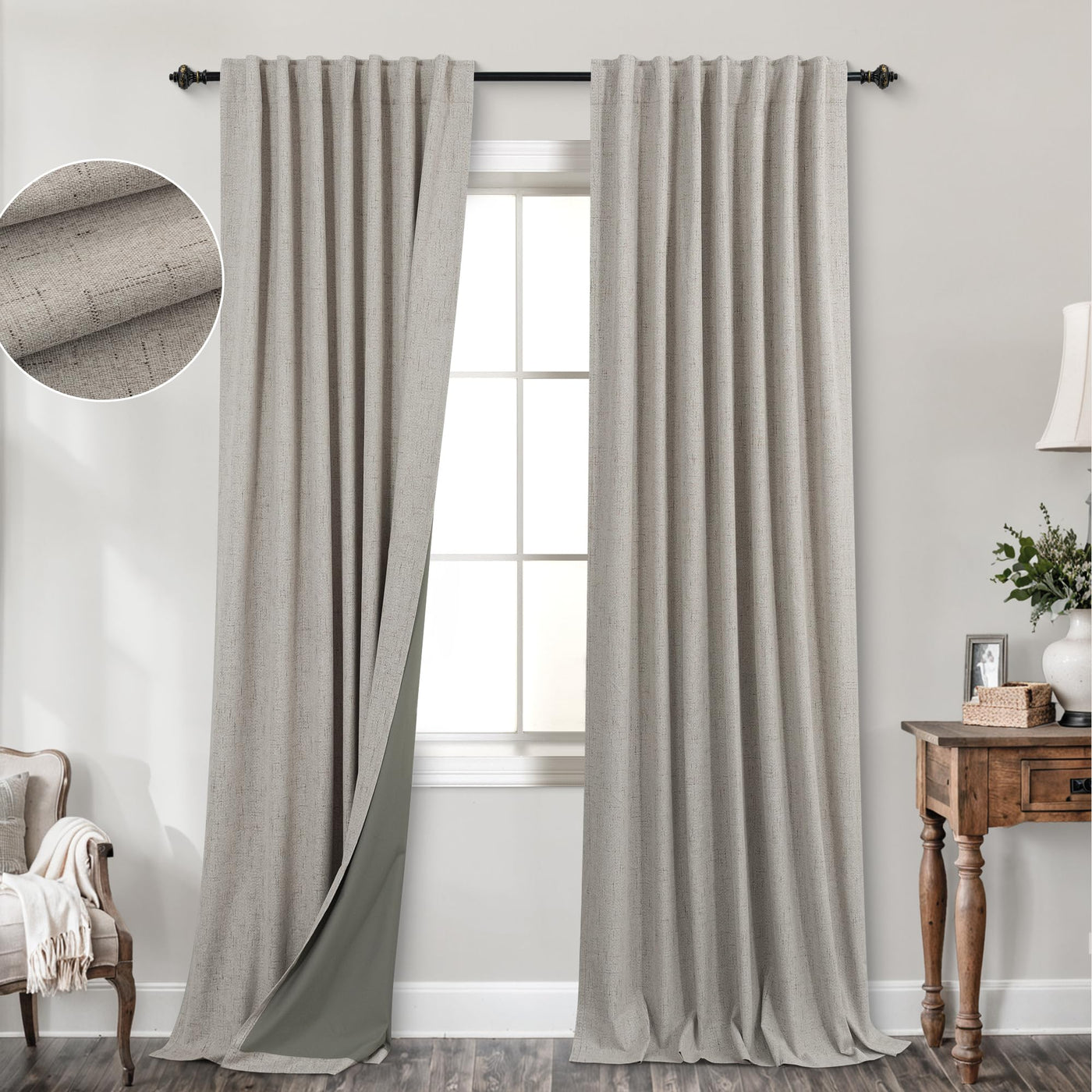 Koufall Neutral Taupe Curtains 84 Inches Long For Living Room,Linen Textured Back Tab Bedroom Curtains 84 Inch Length 2 Panels S