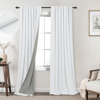 Koufall Neutral White Blackout Curtains 84 Inches Long,Light Blocking Lightweight Linen Cotton Textured Back Tab Black Block Out