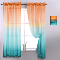 Koufall Orange And Turquoise Curtains For Living Room 84 Inches Long Sheer Ombre 70S Retro Curtains For Bedroom 2 Panels,Mint Gr