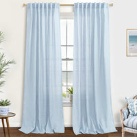 Koufall Pale Blue Curtains 96 Inches Long For Living Room,Linen Sheer Pleated Coastal Curtains For Nursery Boy Girl,Pastel Light Blue