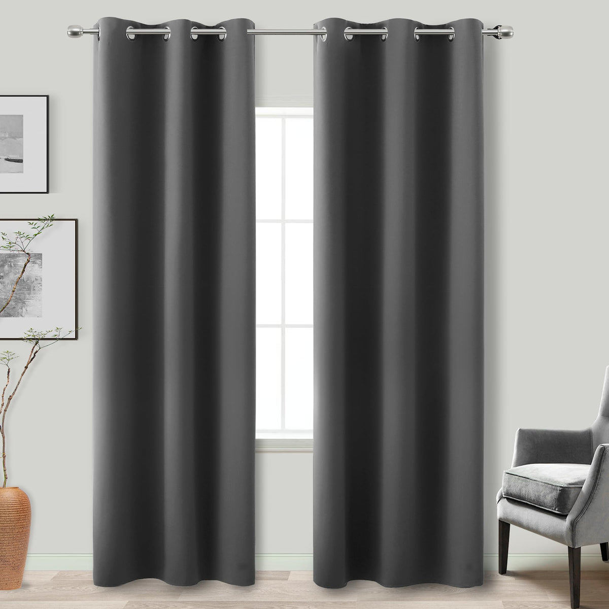 Koufall Privacy Curtains 84 Inches Long For Windows Double Living Room Bedroom,Skinny Room Darkening Blackout Panel Curtains Set,Dark Grey