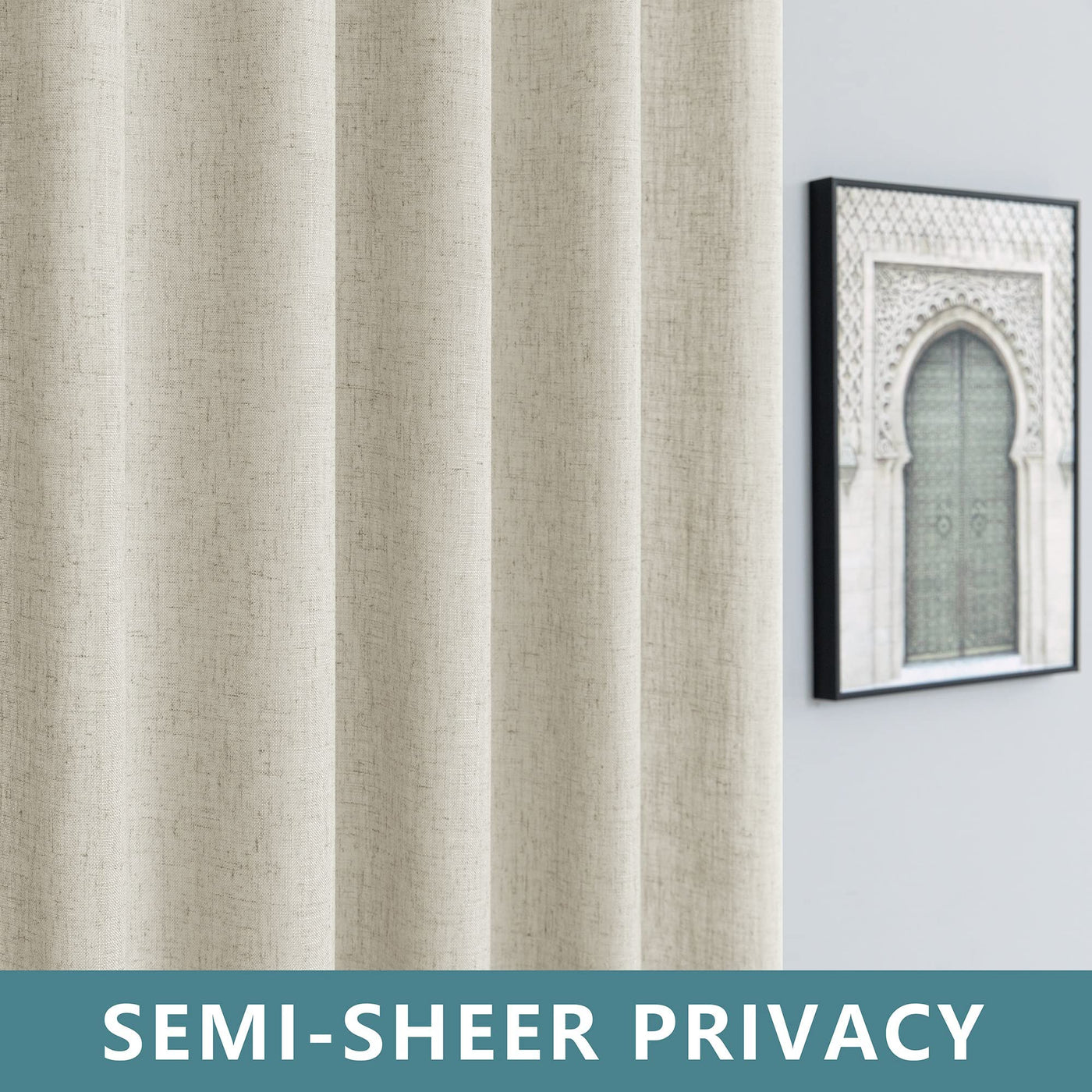 Natural Linen Texture & Semi-sheer: The woven polyester fabric with very natural, randomly placed little flecks of natural linen, creates a breezy linen texture, harmonizing natural sunlight and neutral color into brilliant room ambiance while enhancing privacy.