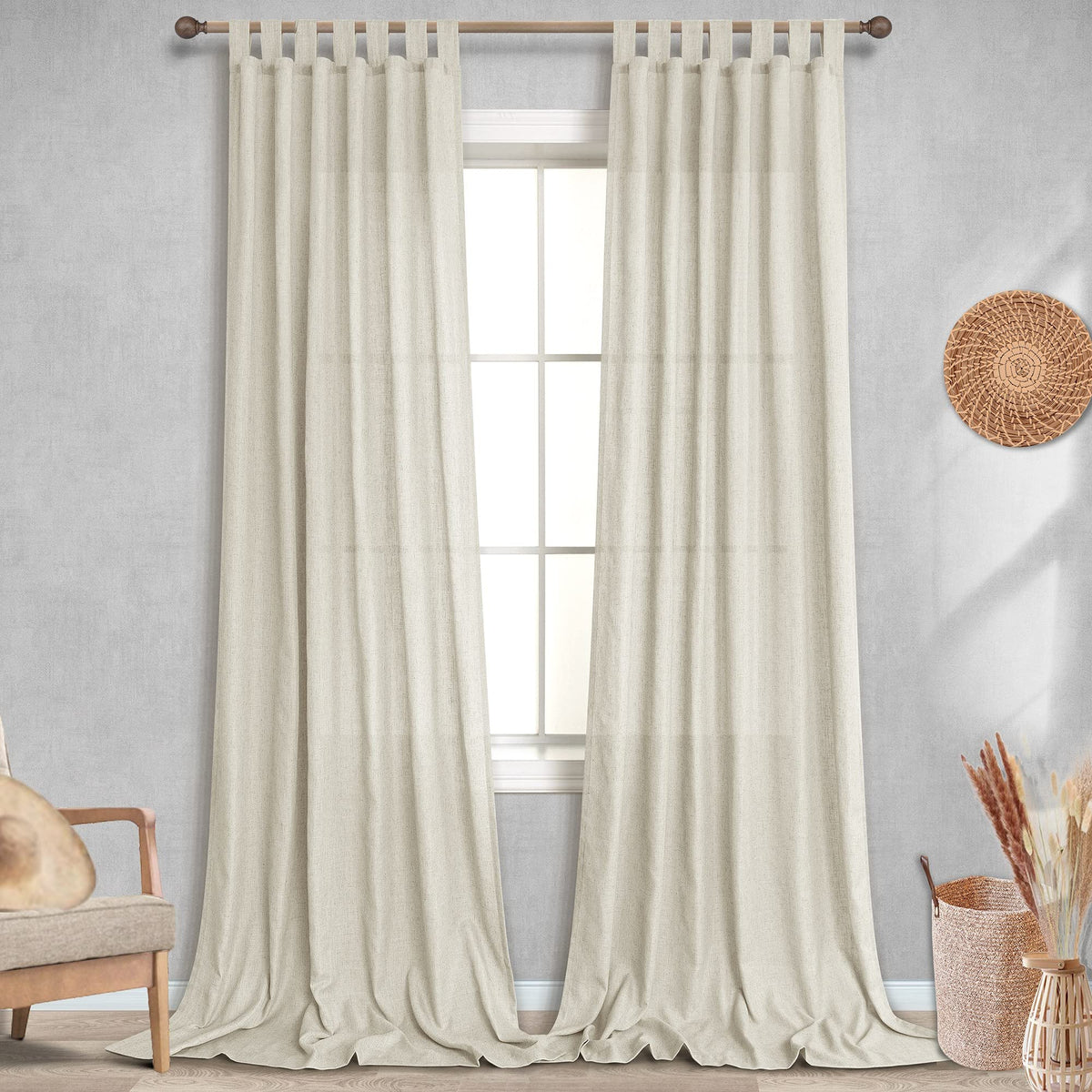 Koufall Retro Curtains For Living Room 70S Antique Old School Fashion Tab Top Linen Sheer Sack Cloth Linen Blend Canvas Lightweight Curtains For Bedroom,96 Inches Long,Sand Tan Beige