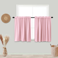 Koufall Rod Pocket Blackout Tier Short Curtains-Pink-24X30
