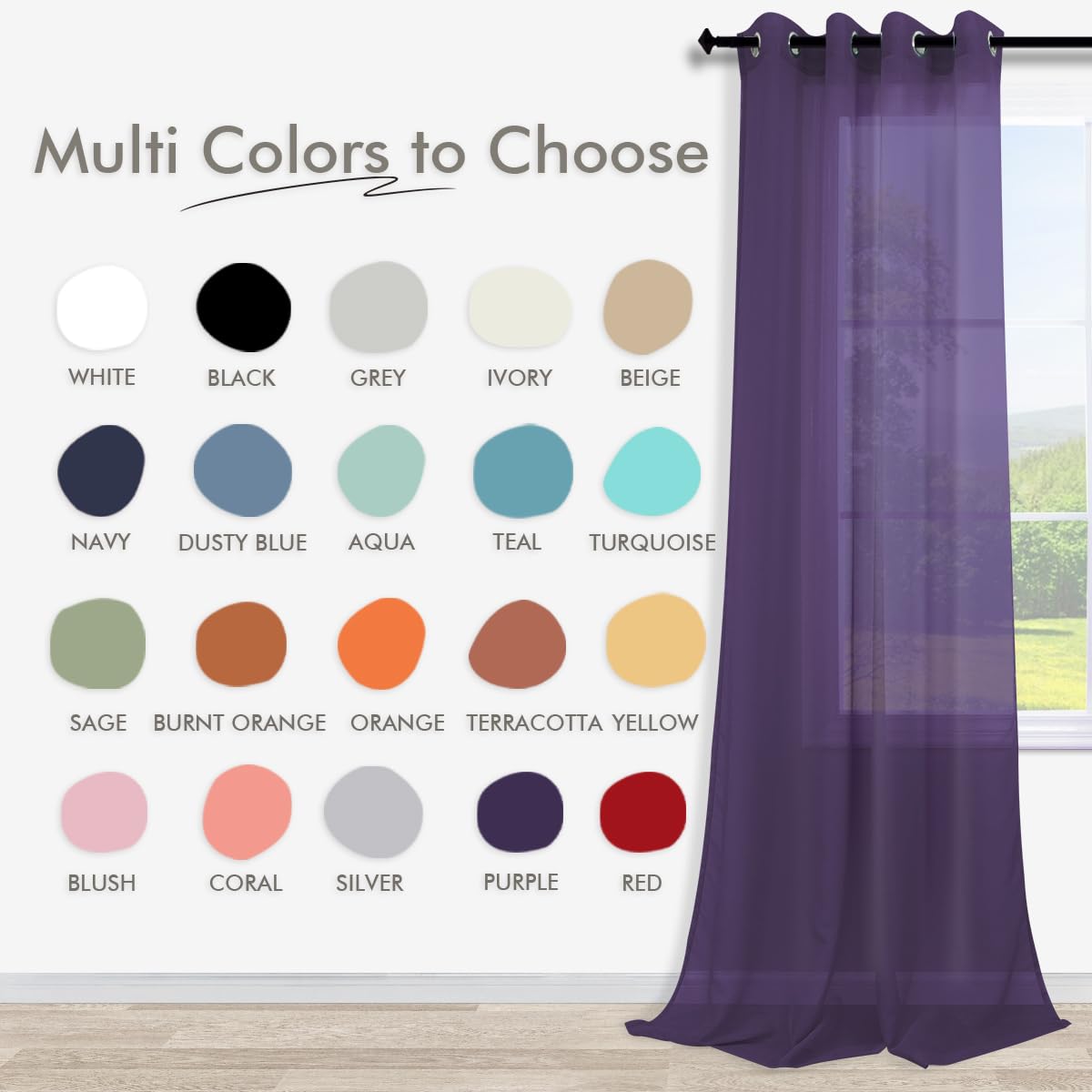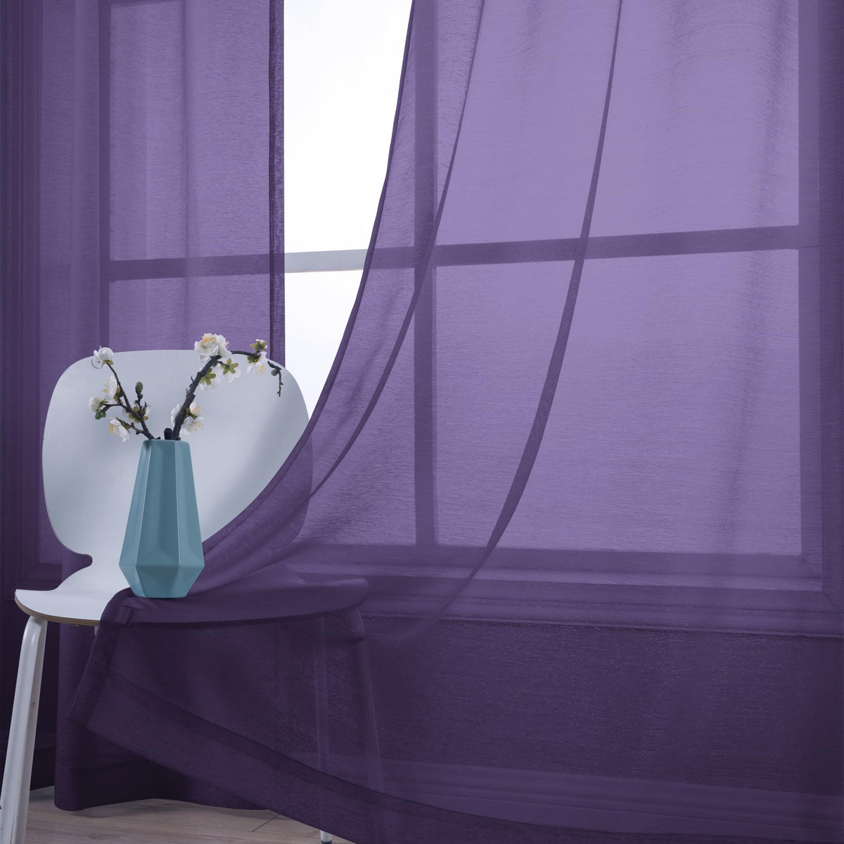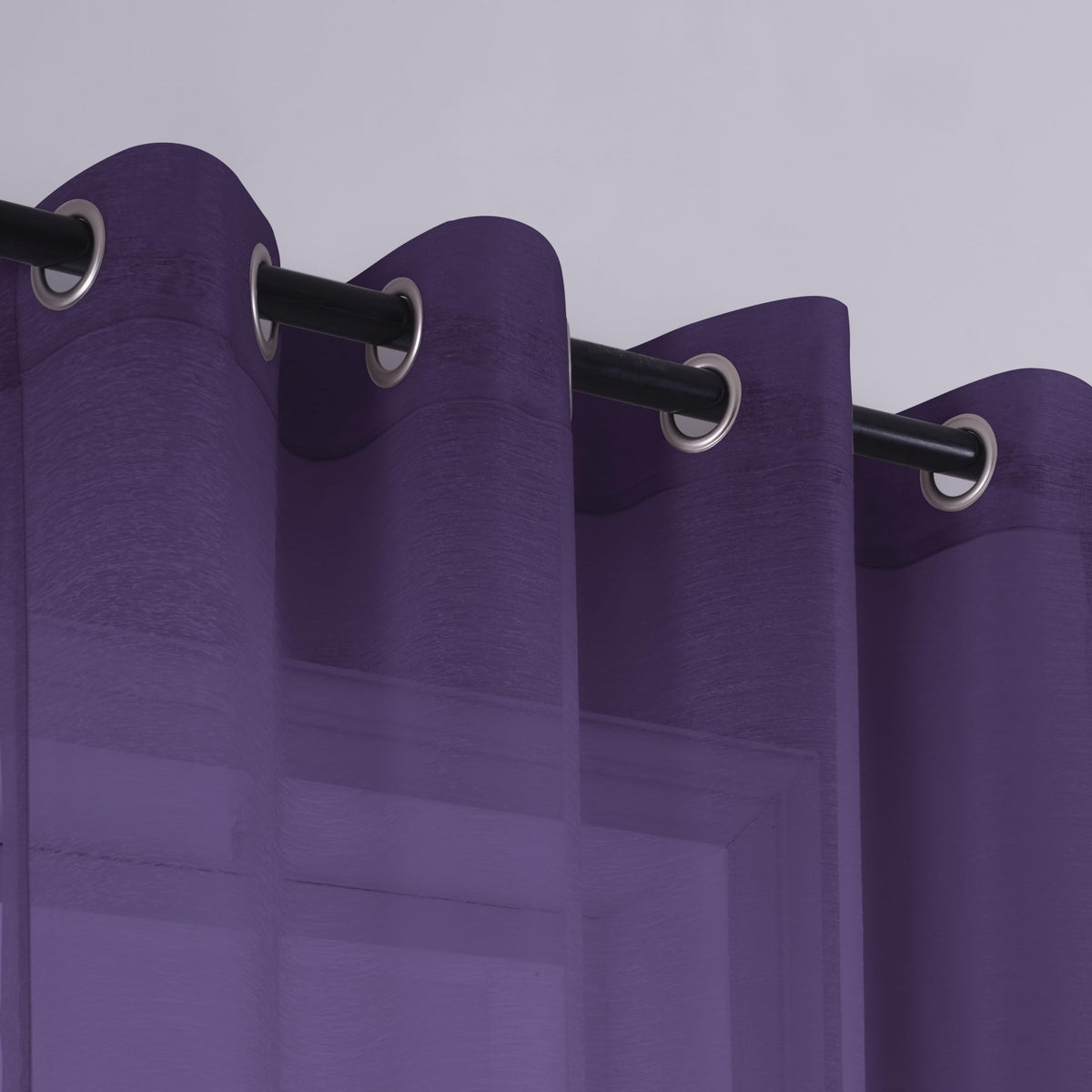 Koufall Royal Purple Grommet Faux Linen Sheer Curtains 52X90 Inch Length