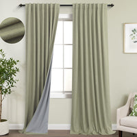 Koufall Sage Green Back Tab Linen Blackout Curtains For Living Room 52X108 Inch Length