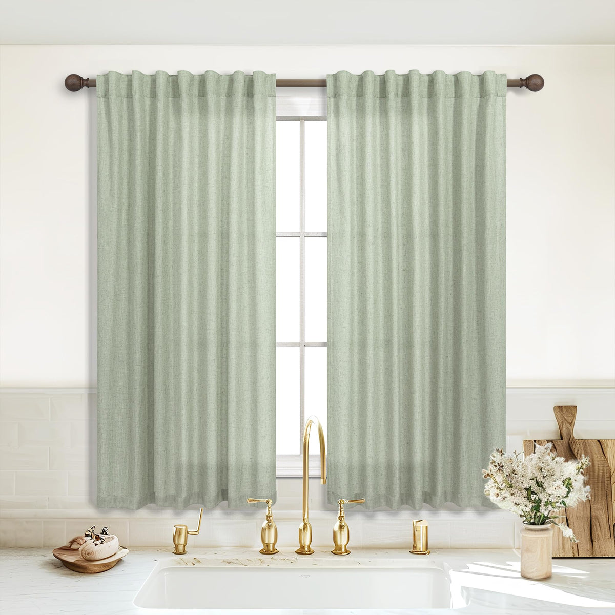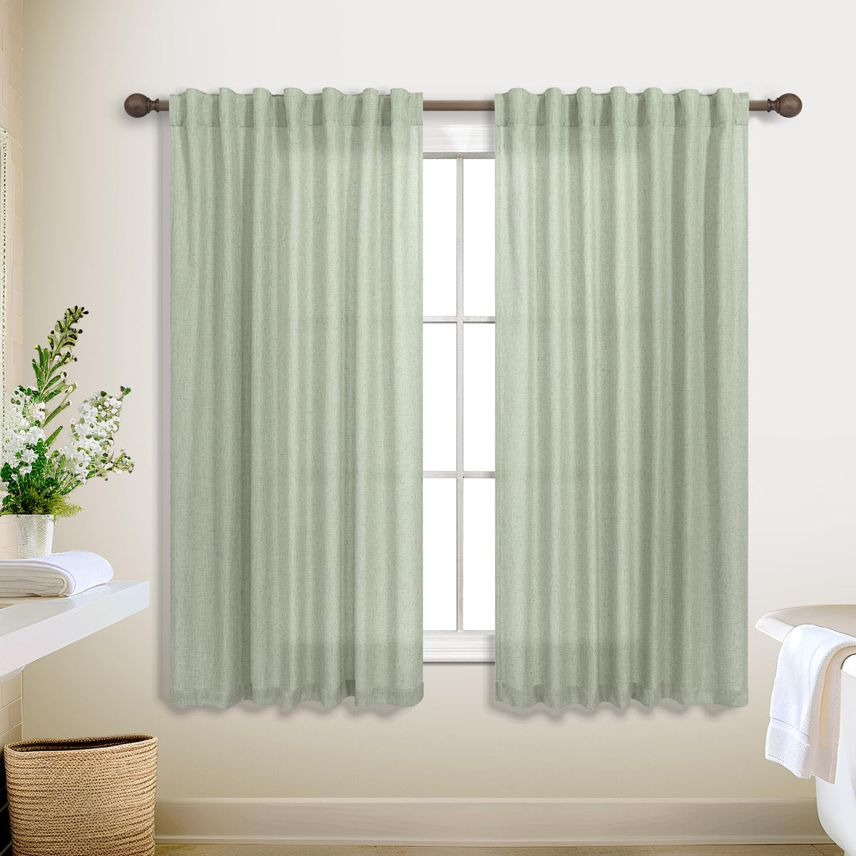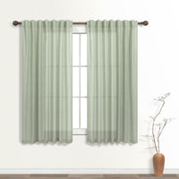 Koufall Sage Green Back Tab Rod Pocket Linen Sheer Curtains 52X45 Inch Length For Bedroom