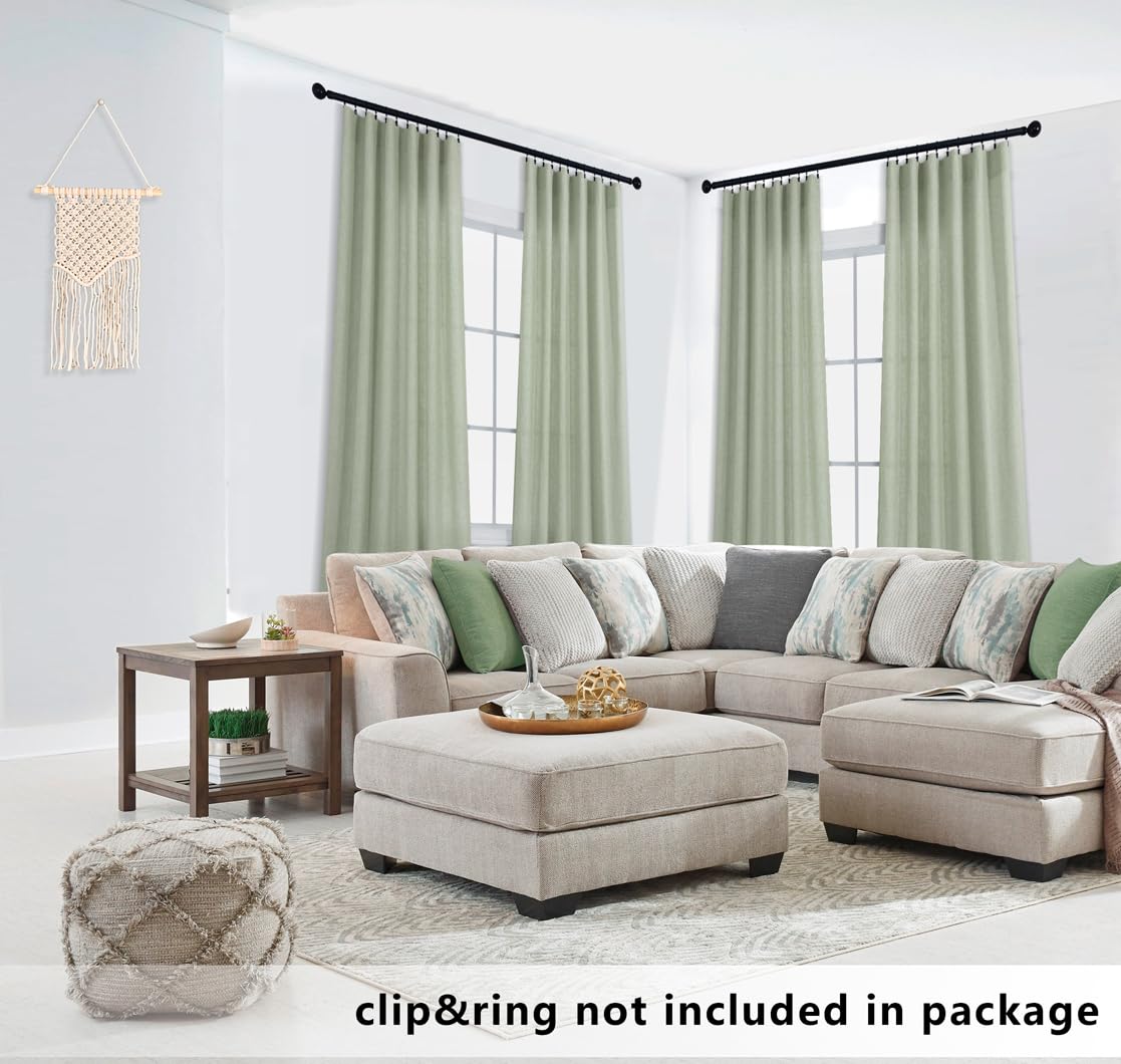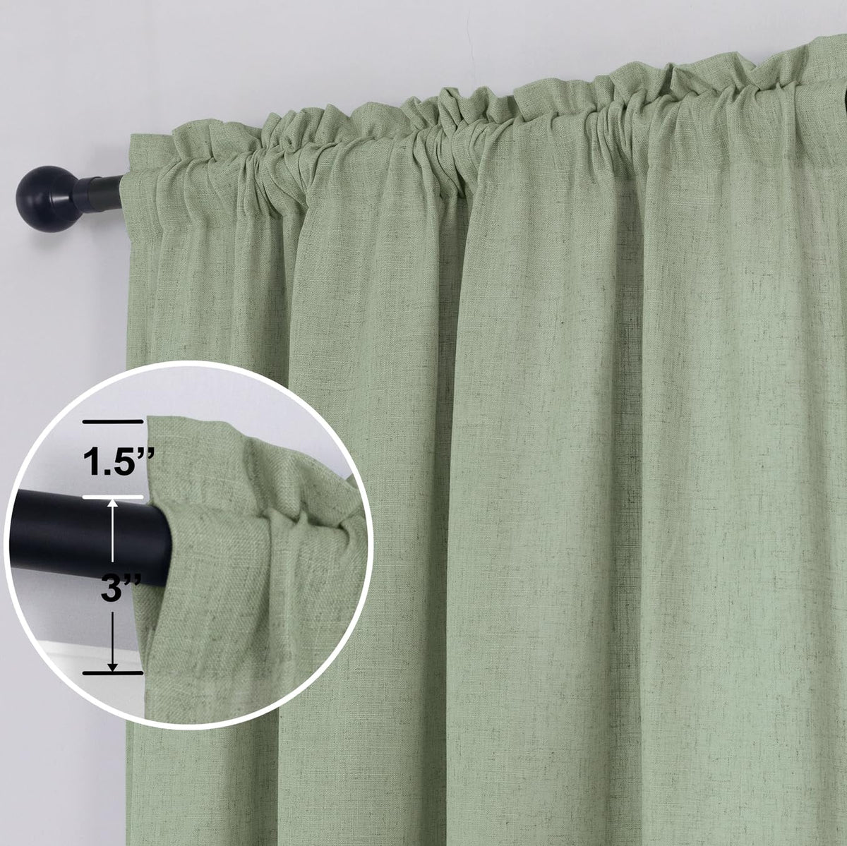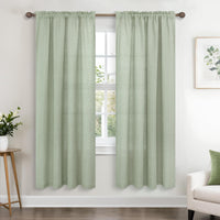 Koufall Sage Green Linen Curtains 63 Inches Long For Bedroom,Rod Pocket Boho Semi Sheer Curtains 63 Inch Length For Living Room Set 2 Panels,Light Green