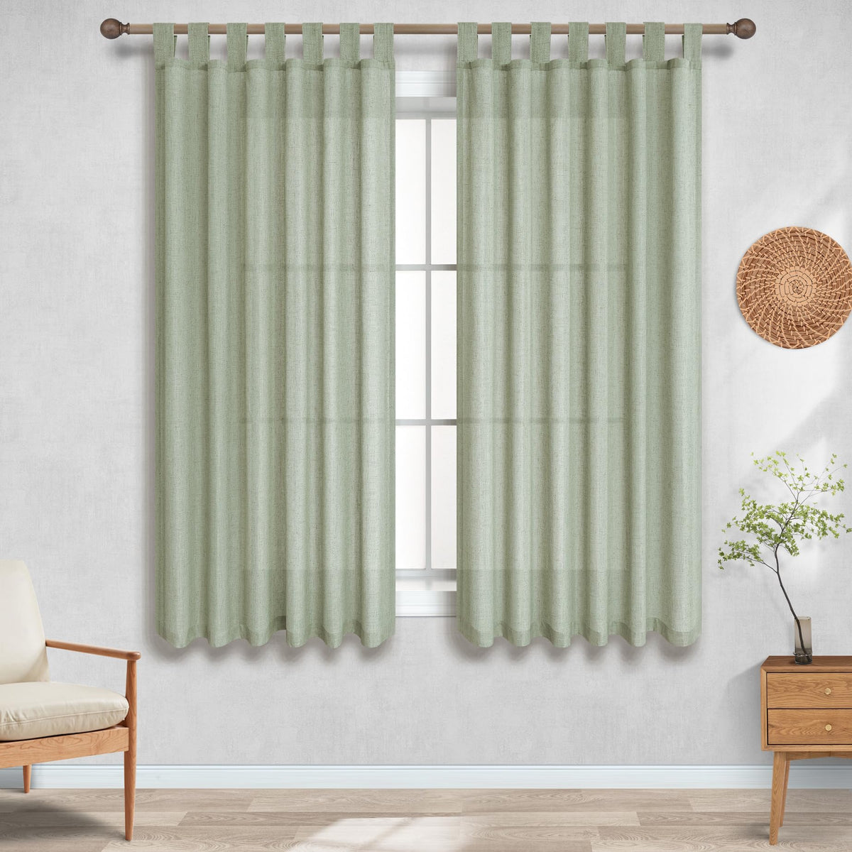 Koufall Sage Green Tab Top Linen Blend Curtains For Living Room 52X54 Inches Long