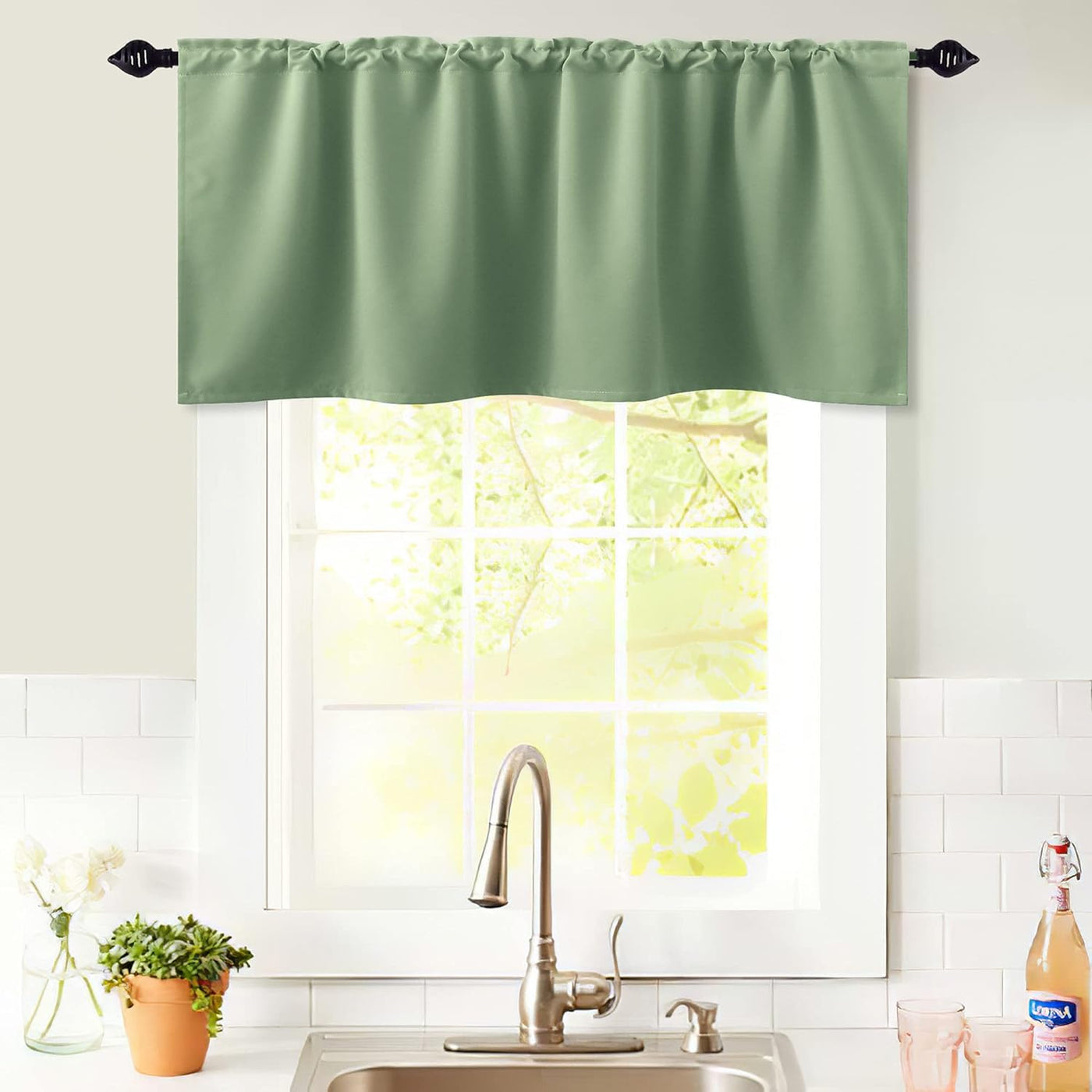 Koufall Sage Green Valance Curtains,Boho Kitchen Curtain Valances For Winows Living Room Bathroom,52 Wide X 15 Inch Length