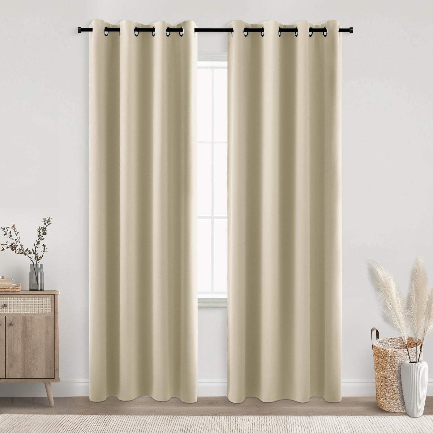 Koufall Sand Beige Curtains 90 Inches Long For Bedroom 2 Panels Set,Blackout Grommet Room Darkening Insulated Beach Farmhouse Style Curtains For Dining Room