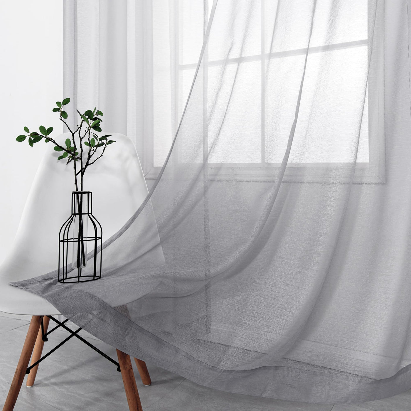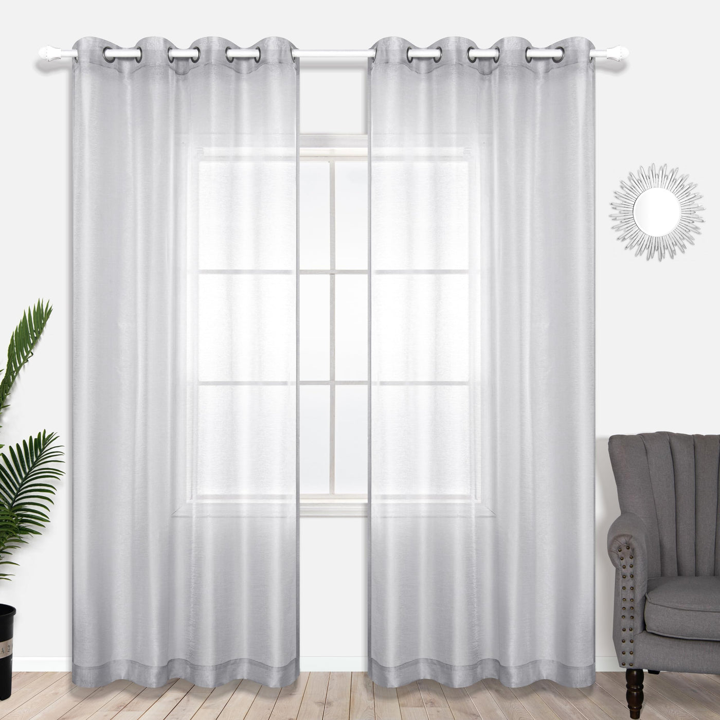Koufall Silver Grommet Faux Linen Sheer Curtains 52X90 Inch Length