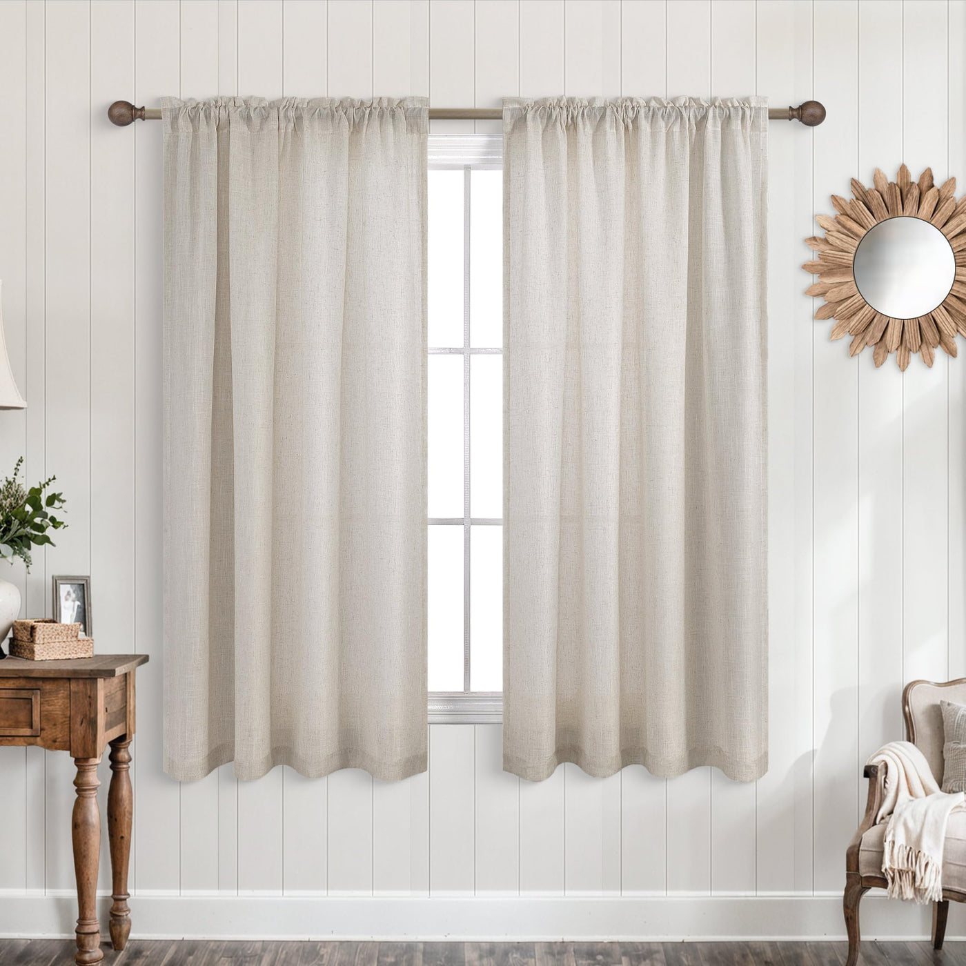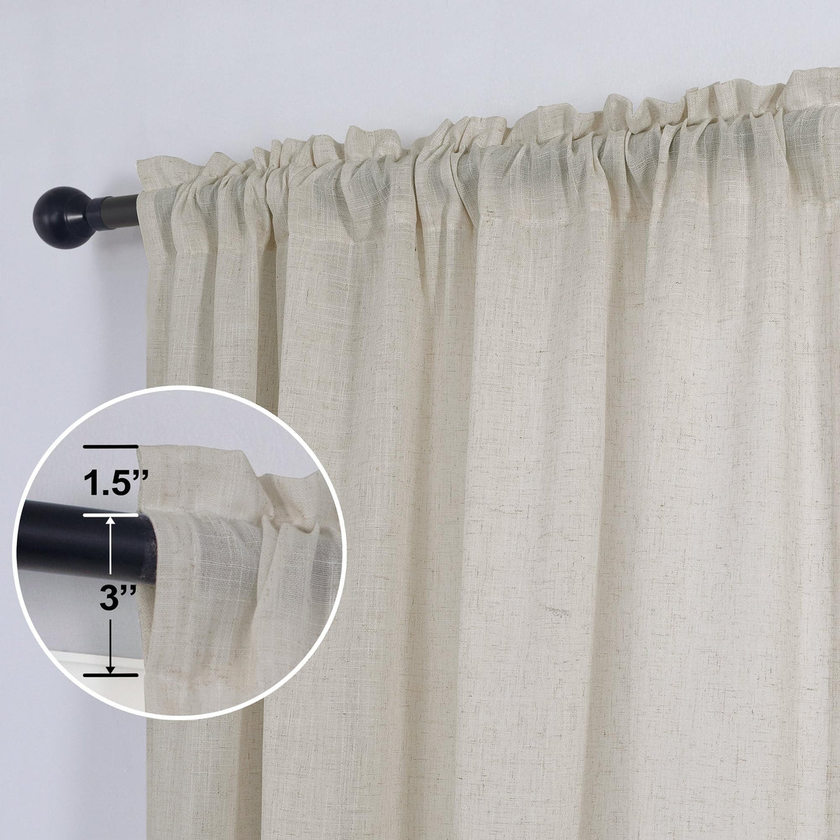 Koufall Tan Beige Rod Pocket Linen Blend Sheer Curtains 45 Inch Length For Bedroom Bathroom Kitchen