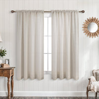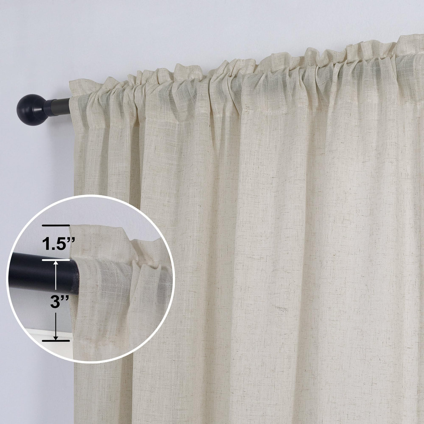 Koufall Tan Beige Rod Pocket Linen Blend Sheer Curtains For Living Room 52X54 Inches Long