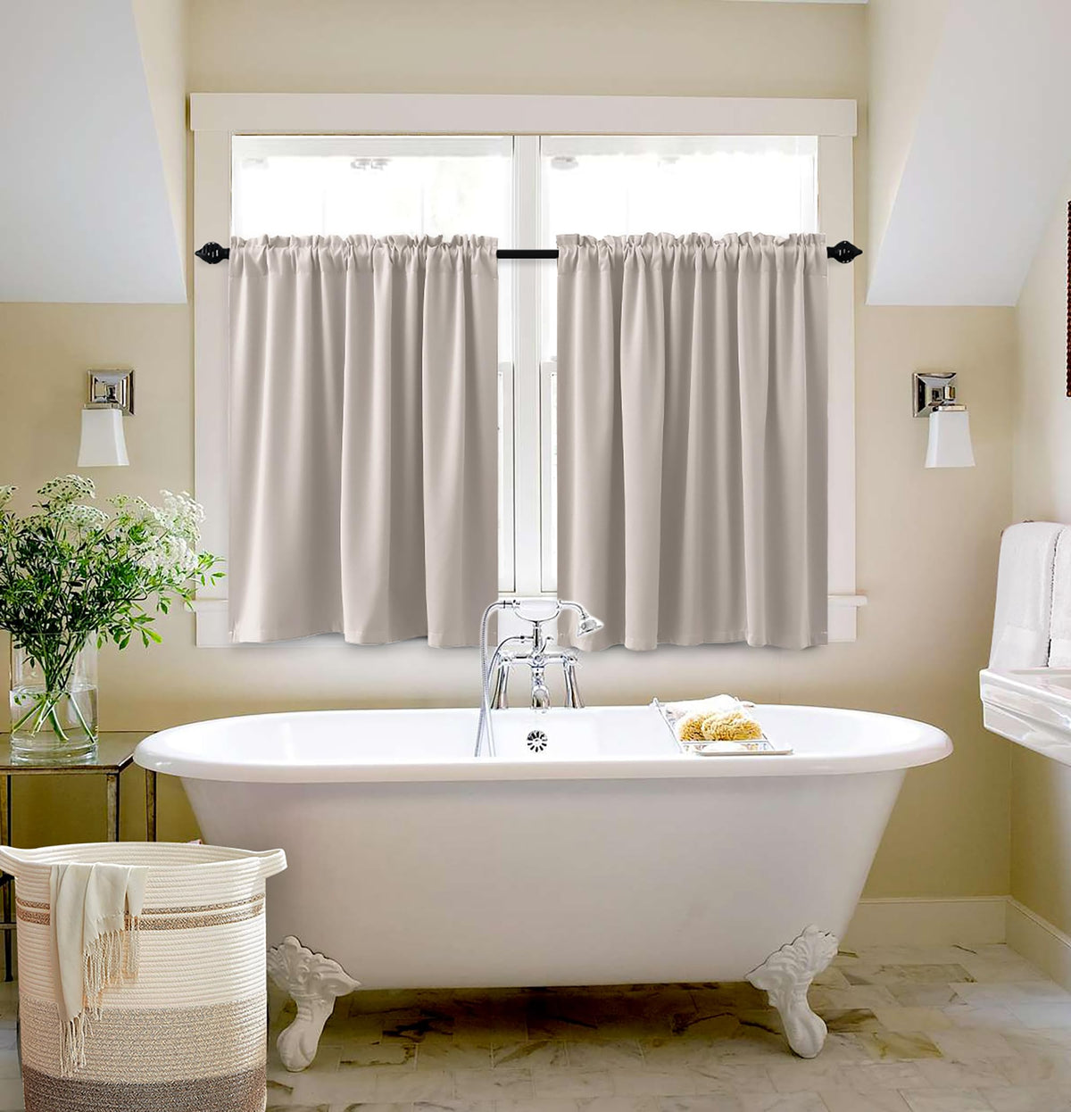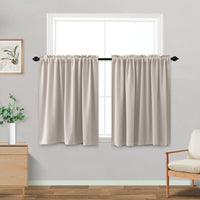 Koufall Tan Beige Small Curtains 24 Inch Length For Kitchen Bathroom Blackout Thermal Insulating Khaki Greyish Stone Curtain Tiers 24 Inches Long For Bedroom With Rod Pocket