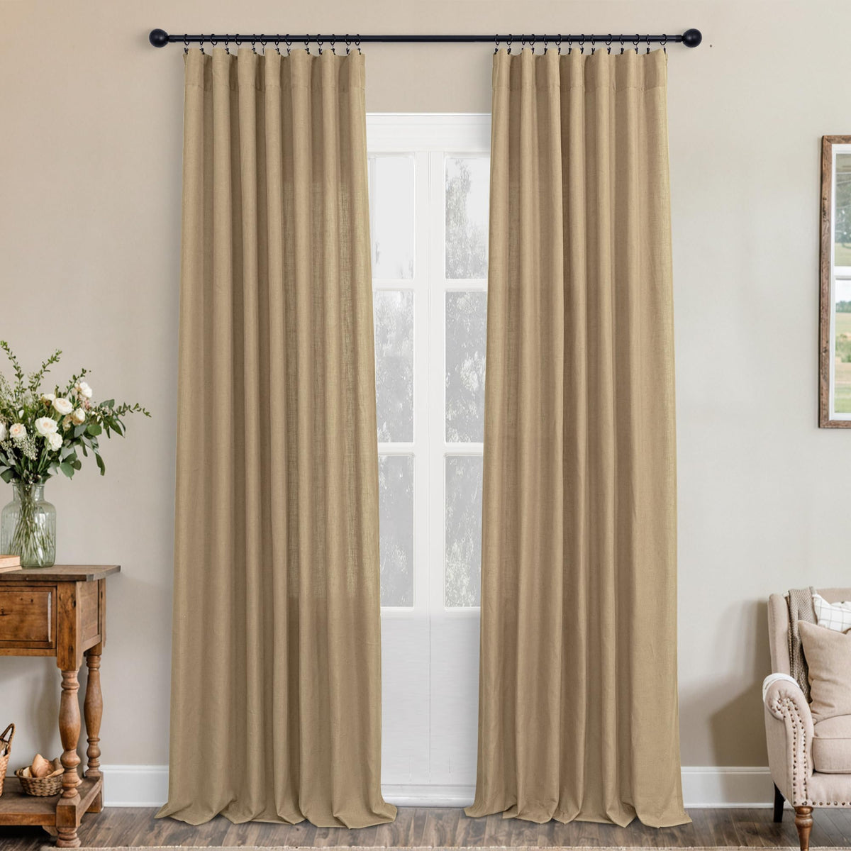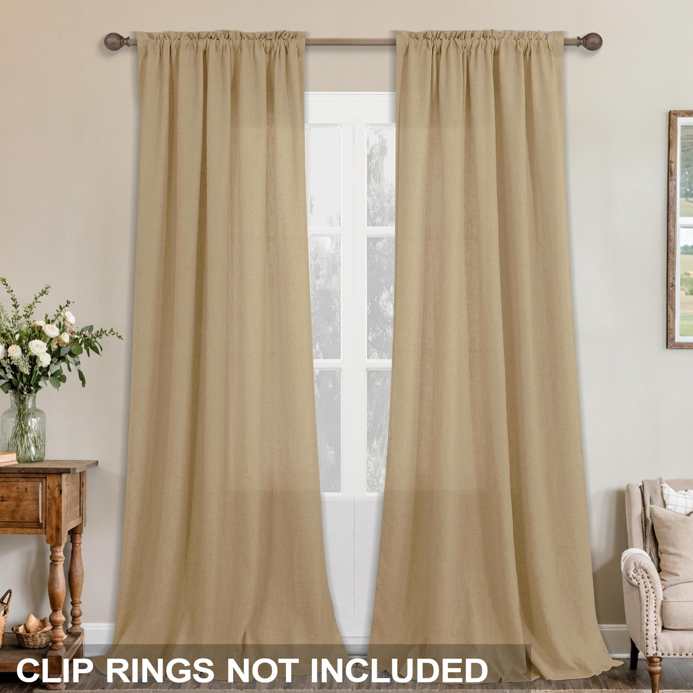 Koufall Tan Light Brown Curtains For Living Room Bedroom,Sheer Linen Curtains 90 Inch Long 2 Panels
