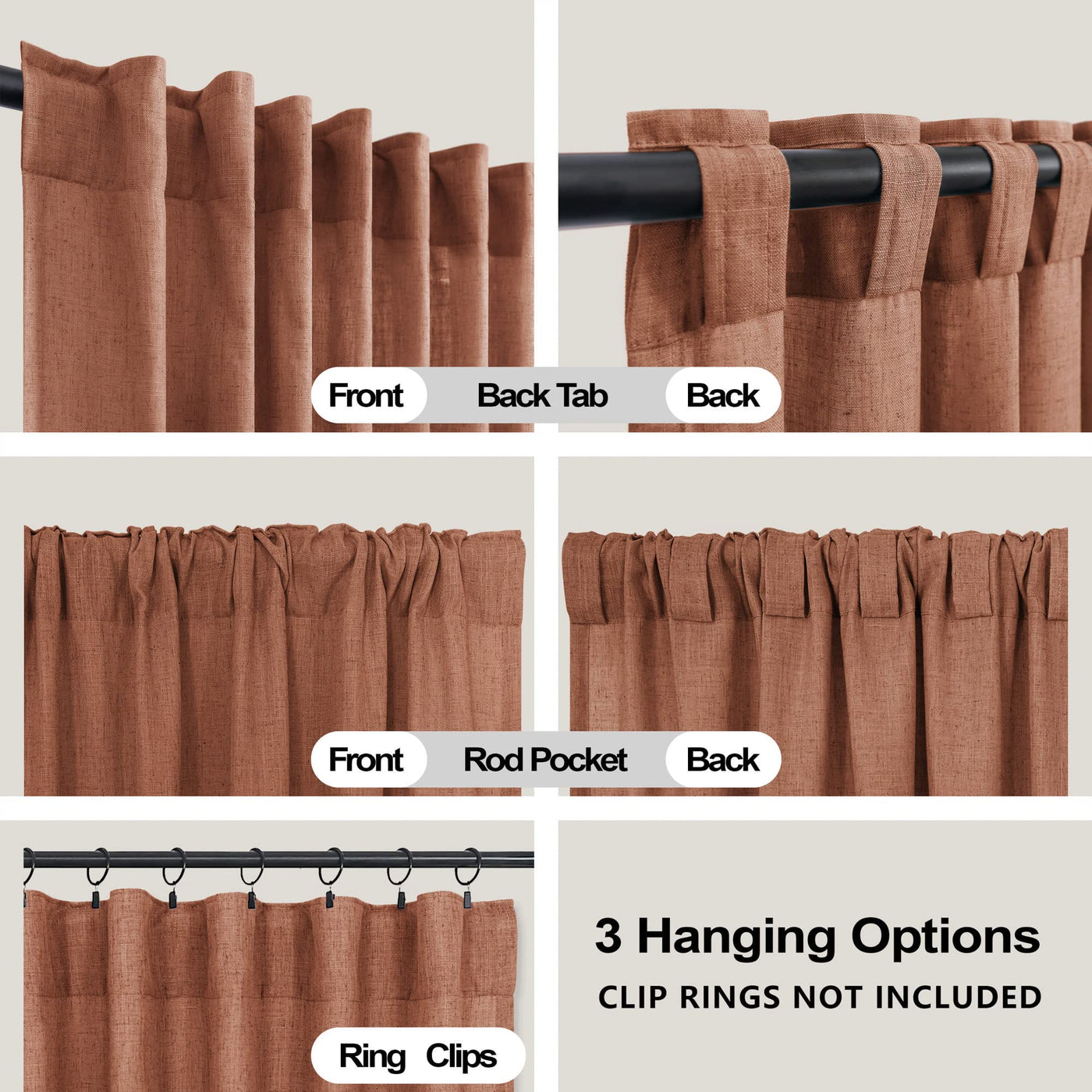 Koufall Terracotta Back Tab Rod Pocket Linen Sheer Curtains For Living Room 52X90 Inches Long