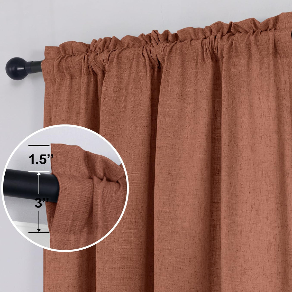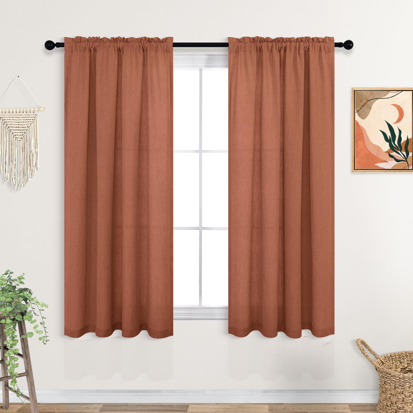 Koufall Terracotta Rod Pocket Linen Blend Sheer Curtains For Living Room 52 By 45