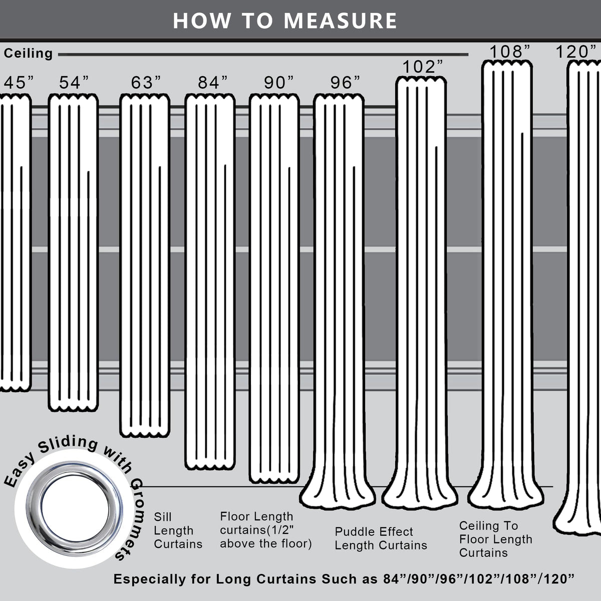 Q: What sizes do the NICETOWN curtains come in?A: Each panel measures 52 inches wide by 45 inches long, with a total width of 104 inches when both panels are used together.