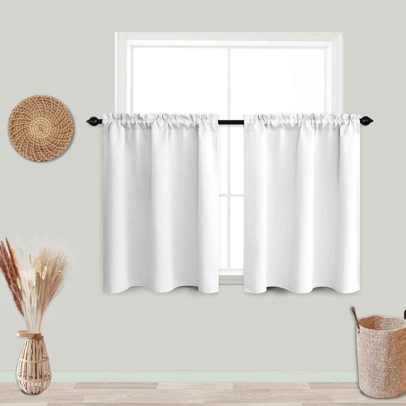 Koufall White Curtains For Small Bathroom Window,50% Blackout Short Curtains For Bedroom,24 X 30 Inch Length