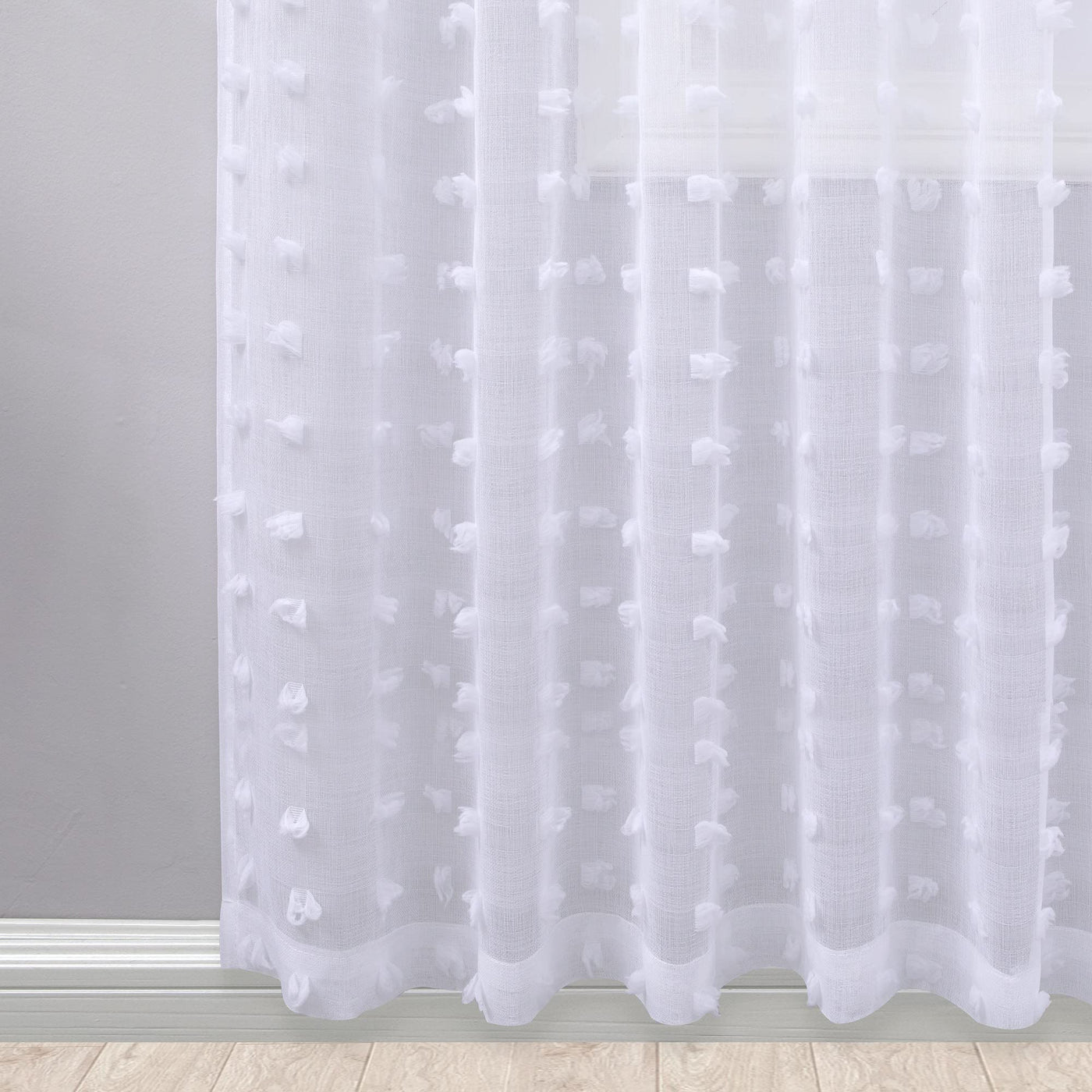 Koufall White Sheer Curtains 45 Inch Length For Bathroom Kitchen Window,Short Country Farmhouse Style Cute Pom Pom Kids Room Curtain For Bedroom Set Of 2 Panels