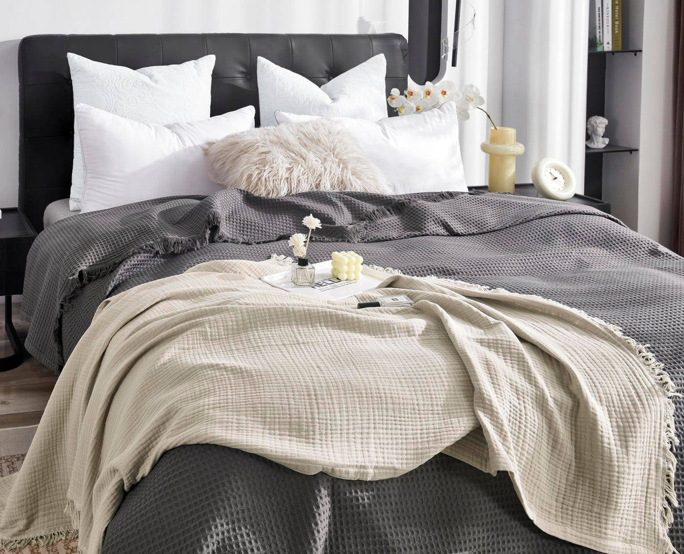 Kyrahome 100% Organic Cotton 90'X104' King Muslin Throw Blanket For Bed Couch Pre-Washed Plant-Hand Dyed, Breathable Layering