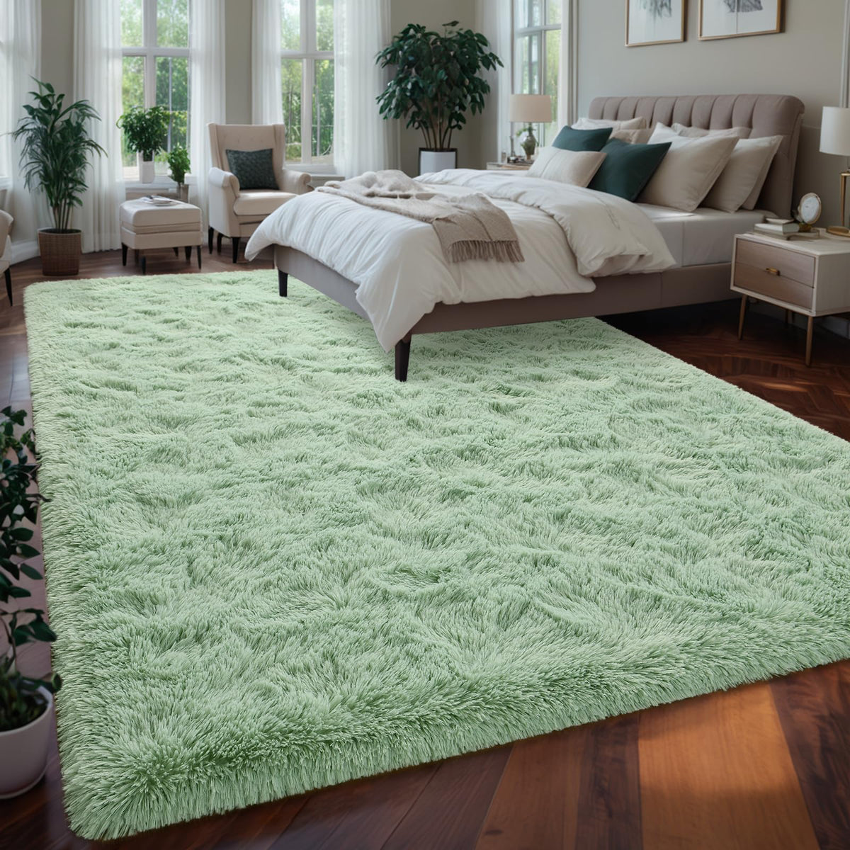 Larhom Fluffy Fuzzy Sage-Green Rugs For Bedroom, 4X6 Feet Soft Non Slip Plush Area Rug For Living Room, Kids Room, Indoor Modern