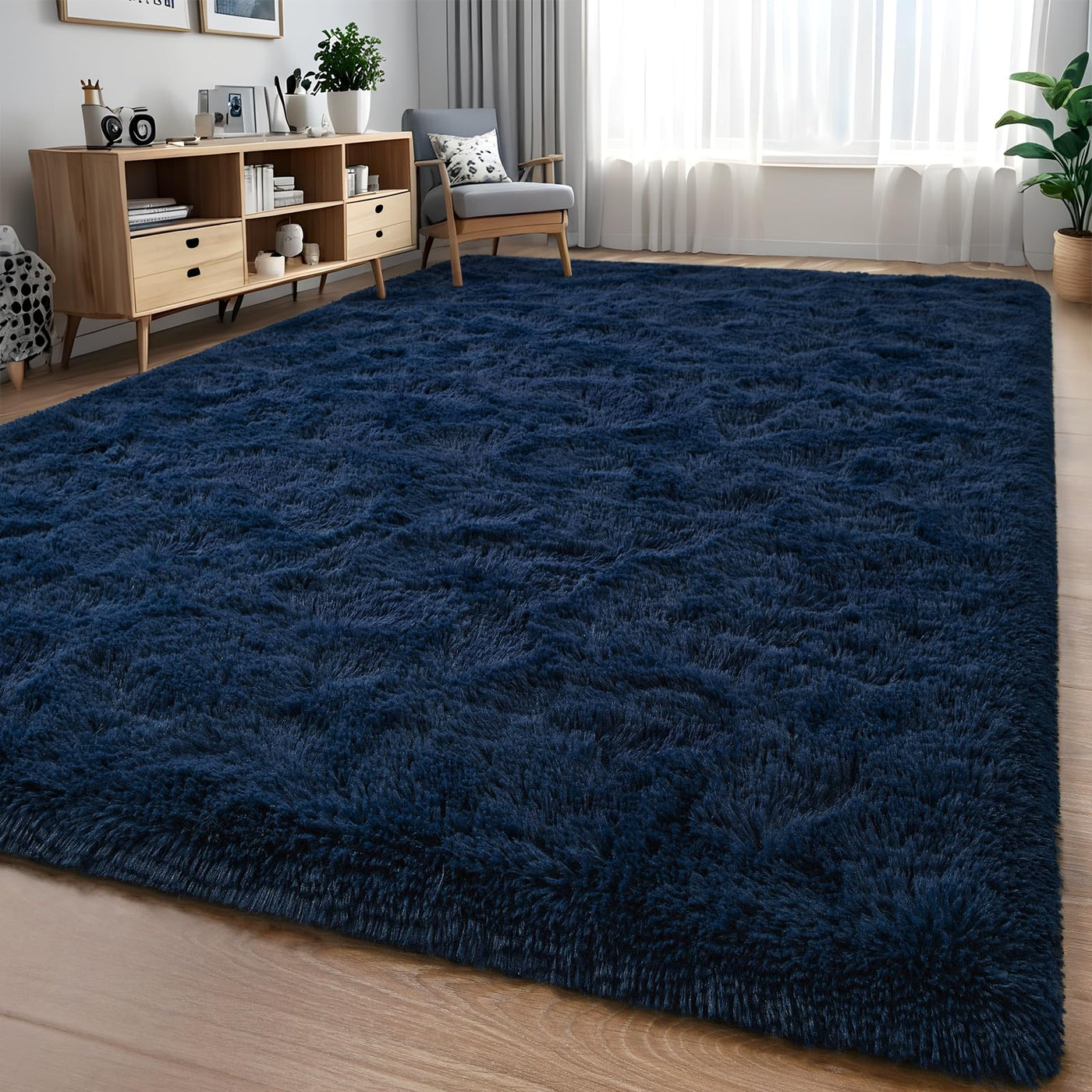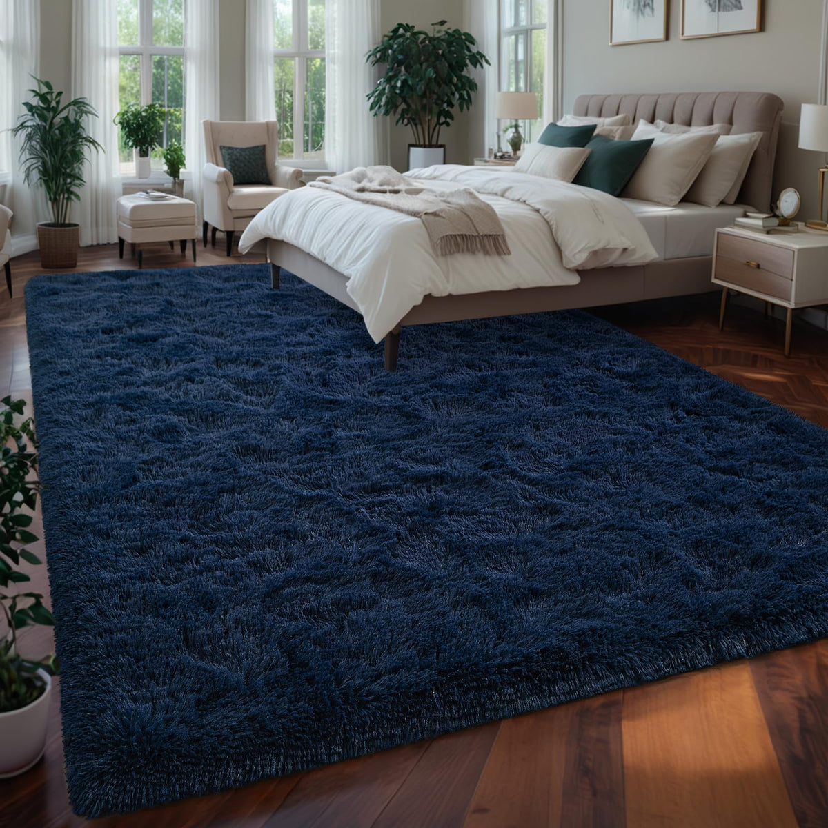 Larhom Fluffy Shag Area Rug For Bedroom Living Room, 4X6 Ft Navy Blue Fuzzy Plush Rugs For Kids Girls Boys Room, Nursery Dorm Ro