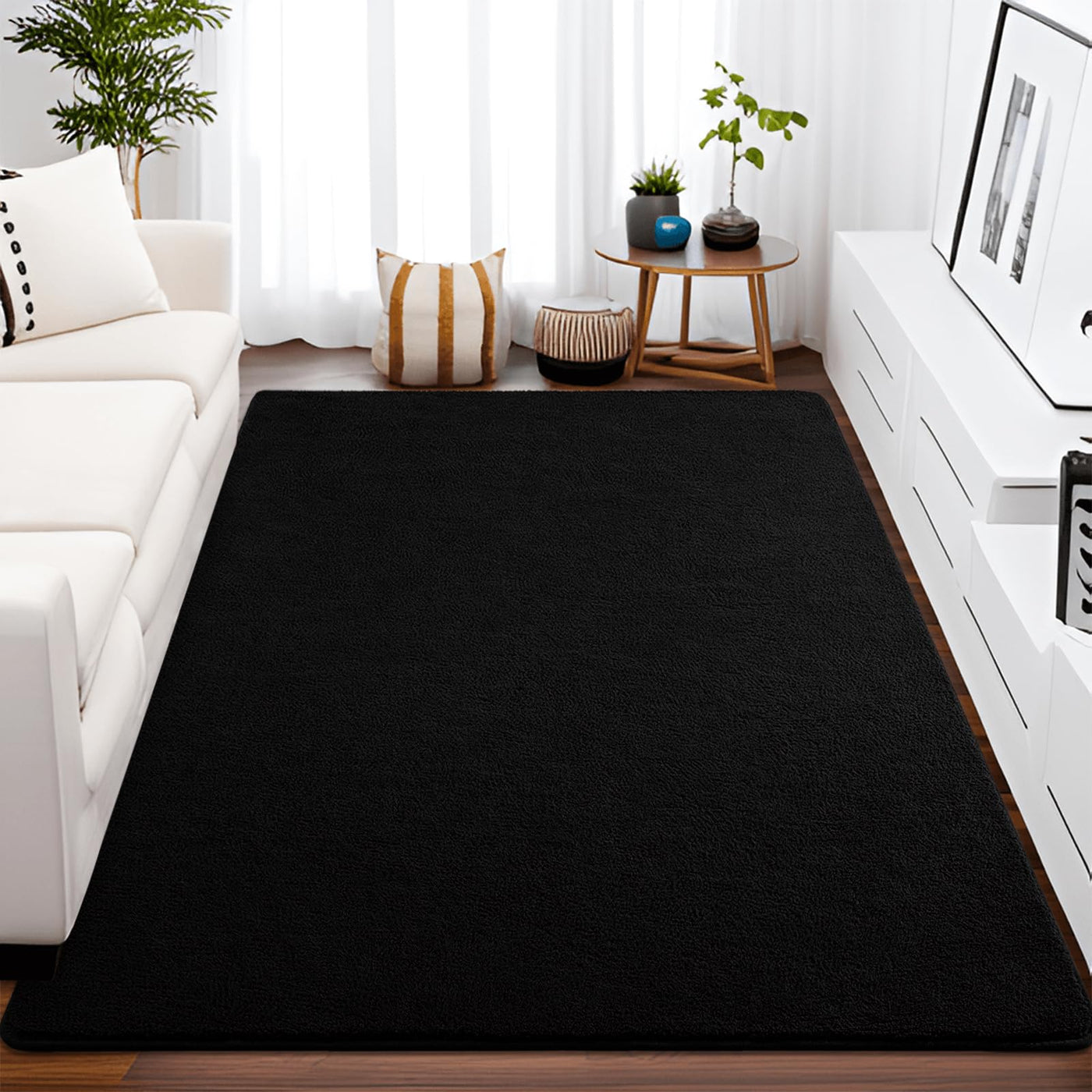 Larhom Large Modern Area Rugs For Bedroom Living Room, 5X7 Feet Black Rug, Thickened Memory-Foam Indoor Carpets, Minimalist Rug