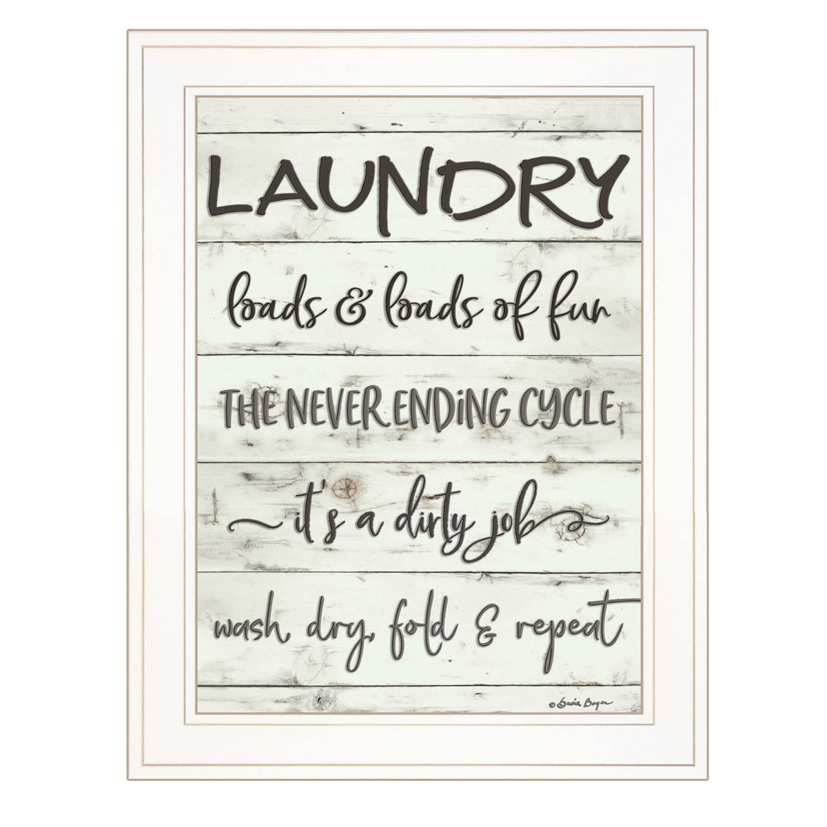 This laundry 1 white framed print wall art will add a beautiful decorative accent to your decor. This print is a visual artistic expression that allows you to decorate your space in style. Reproduced for you on paper, this hanging decorative accent will be a trendy and fashionable way to dress your walls. Hang on your wall to add some up to date fashion and decoration. Utilize this opportunity to a focal point in the room with this fabulous wall decor option. 19' H x 19' 5' W x 1 ' D