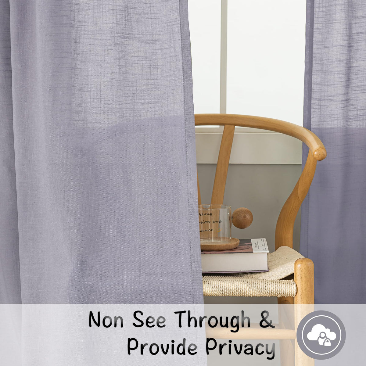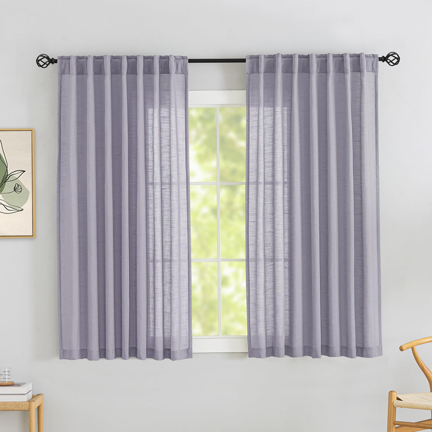 Lavender Linen Back Tab Curtains 72 Inches Long 2 Panels Set For Guest Room - Modern Country Rod Pocket Semi Sheer Privacy Drapes Hooks Light Filtering Playroom Curtains 52 X 72 Inch Lilac