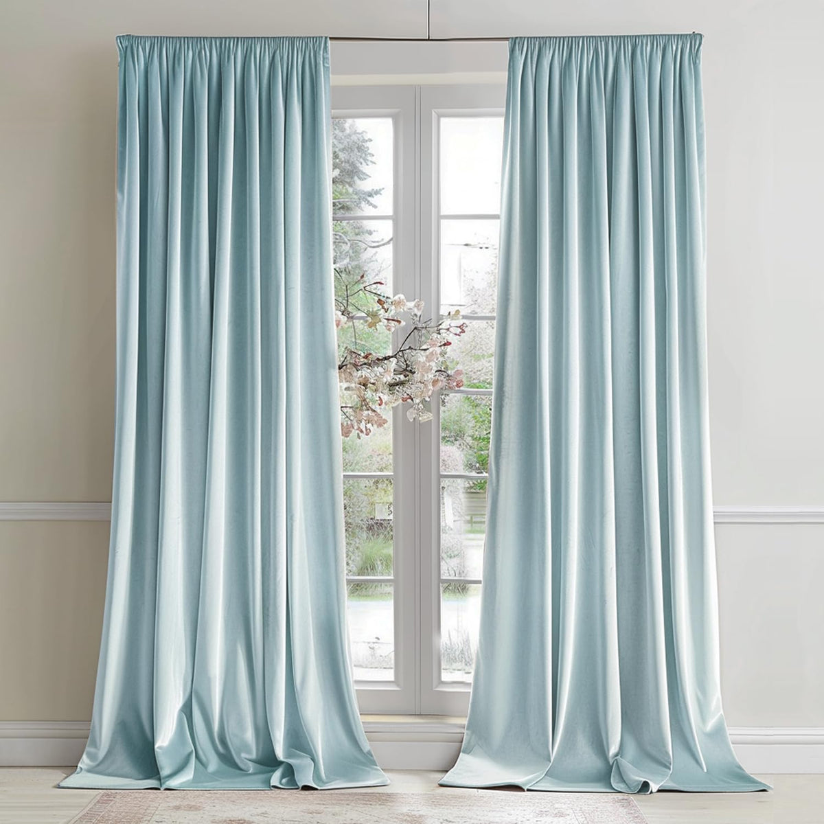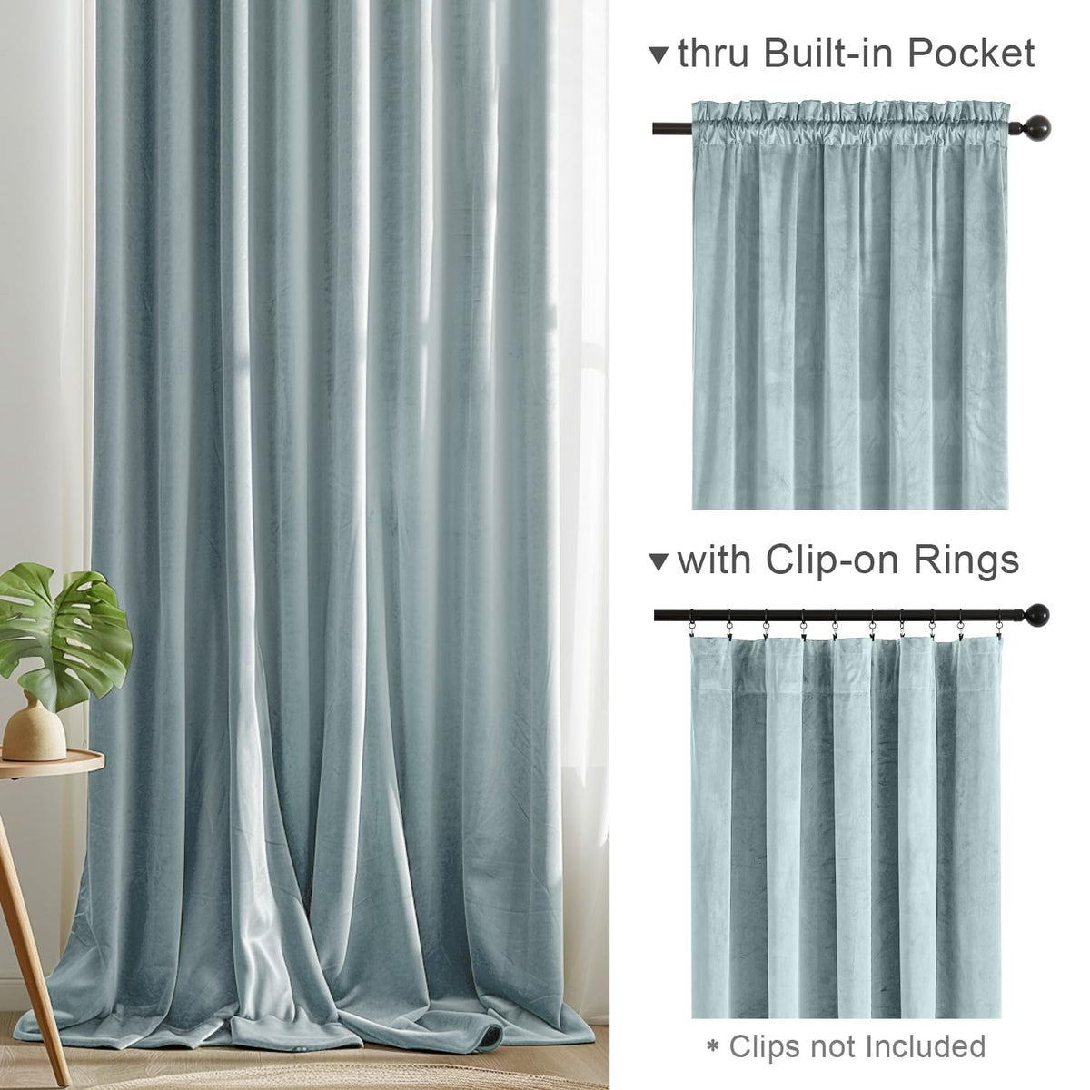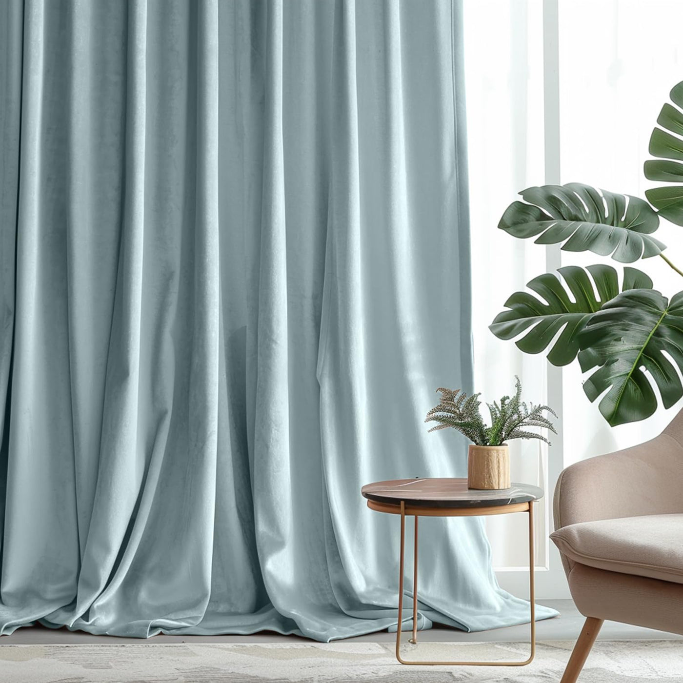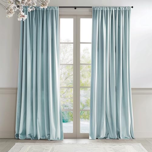 Lazzzy Baby Blue Velvet Curtains Room Darkening Thermal Insulated Curtains 108 Inch Long Window Drapes For Bedroom Living Room Super Soft Luxury Rod Pocket Window Treatment, 2 Panels