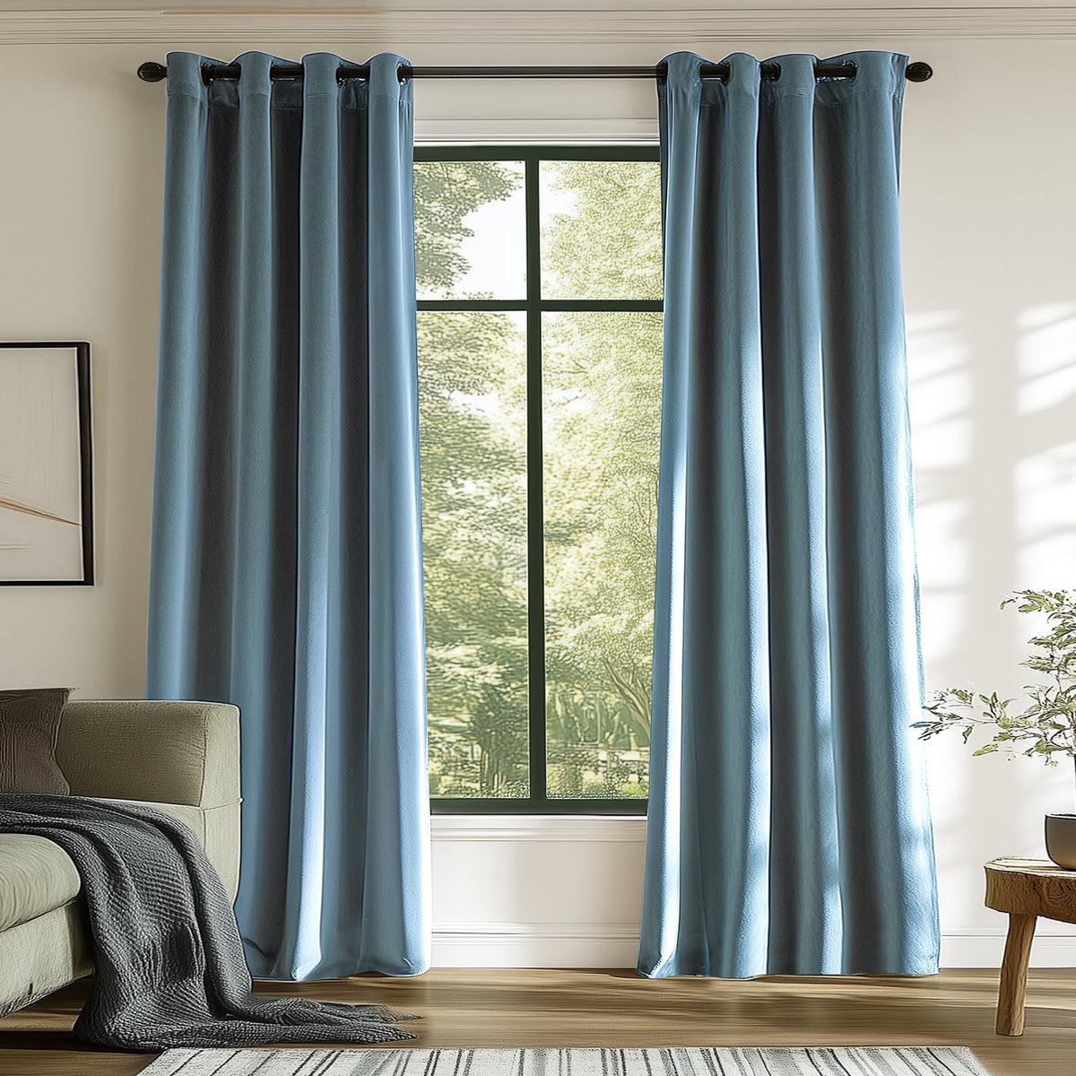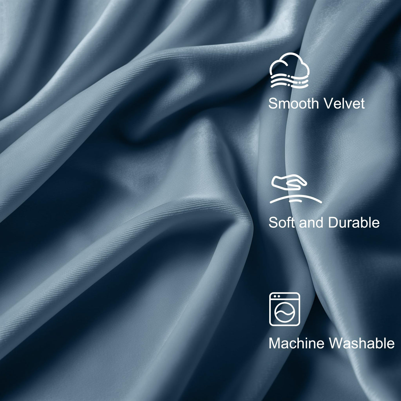 Lazzzy Blackout Velvet Curtains Blue Thermal Insulated Curtains 108 Inch Extra Long Drapes For Bedroom Living Room Darkening Window Treatments Grommet Living Room Curtains Set Of 2 Panels Dark Slate