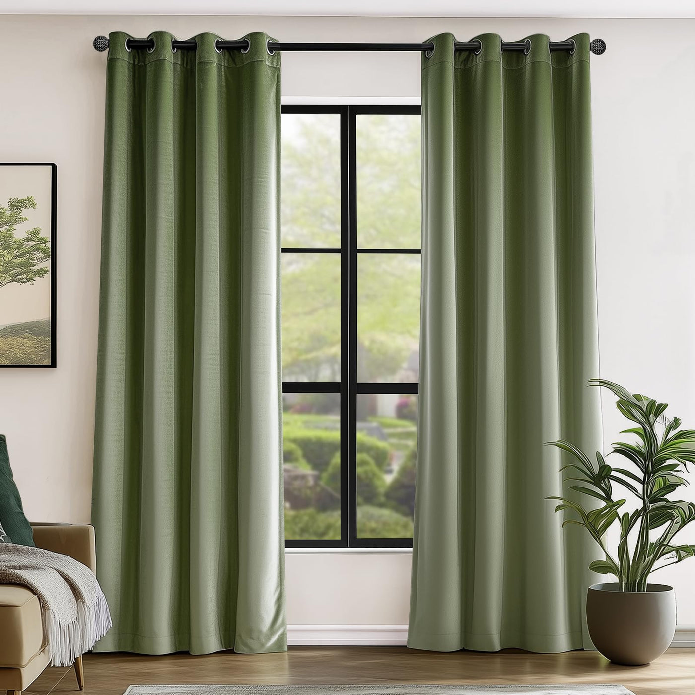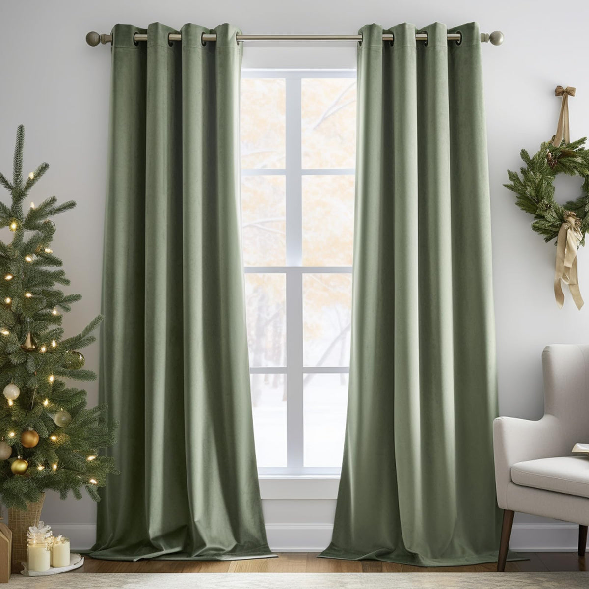 Lazzzy Blackout Velvet Curtains Green Thermal Insulated Curtains 84 Inch Long Drapes For Bedroom Living Room Darkening Window Treatments Grommet Living Room Curtains Set Of 2 Panels Sage Green