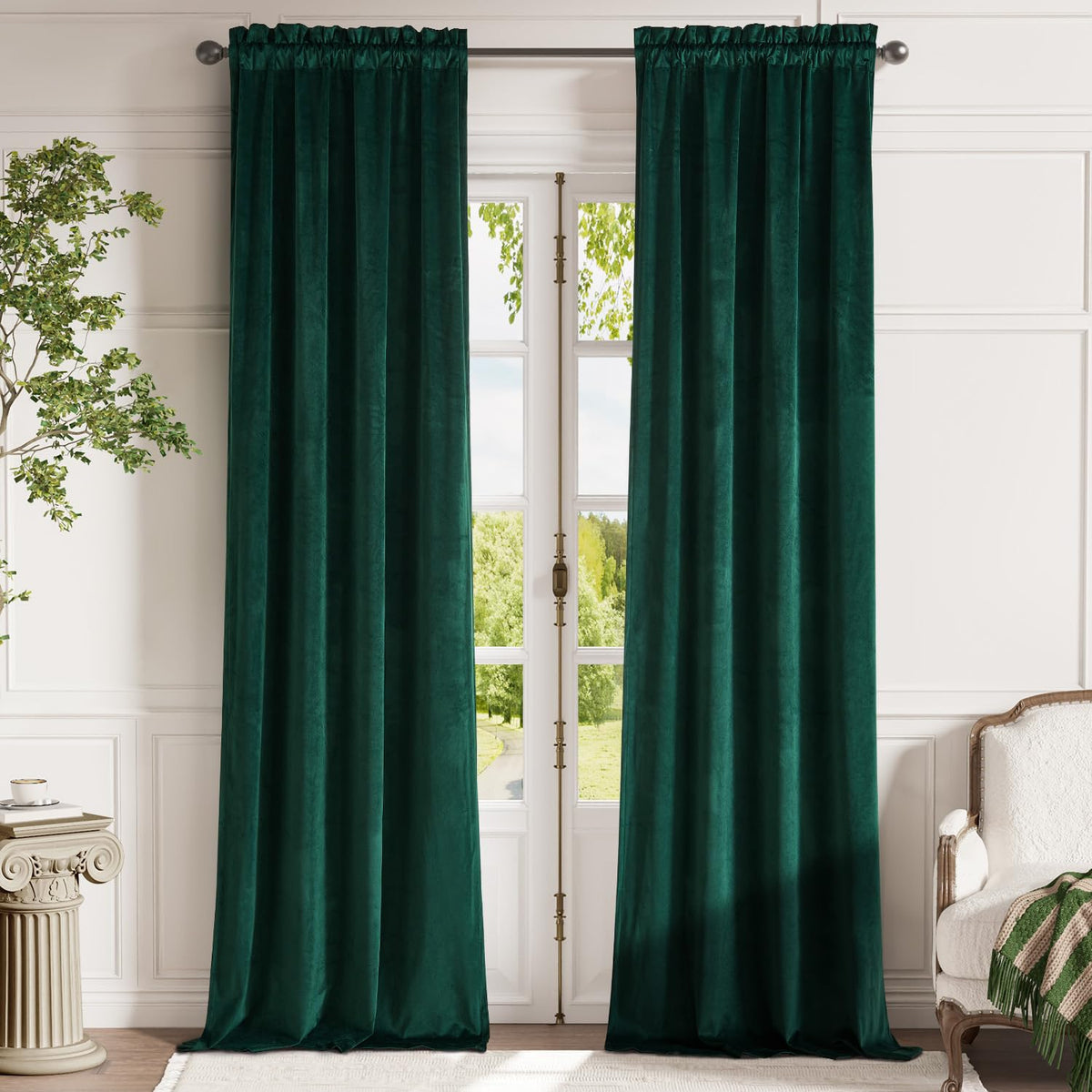 Lazzzy Emerald Green Velvet Curtains 108 Inches Long Room Darkening Drapes For Bedroom Living Window Treatments Rod Pocket 2 Panels, W42 X L108
