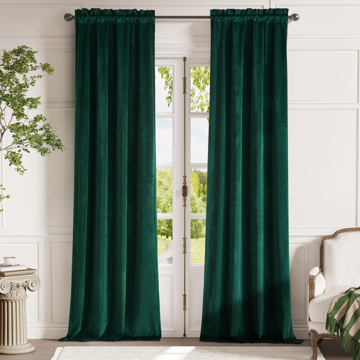 Lazzzy Emerald Green Velvet Curtains 96 Inches Long Room Darkening Drapes For Bedroom Living Window Treatments Rod Pocket 2 Panels W42 X L96