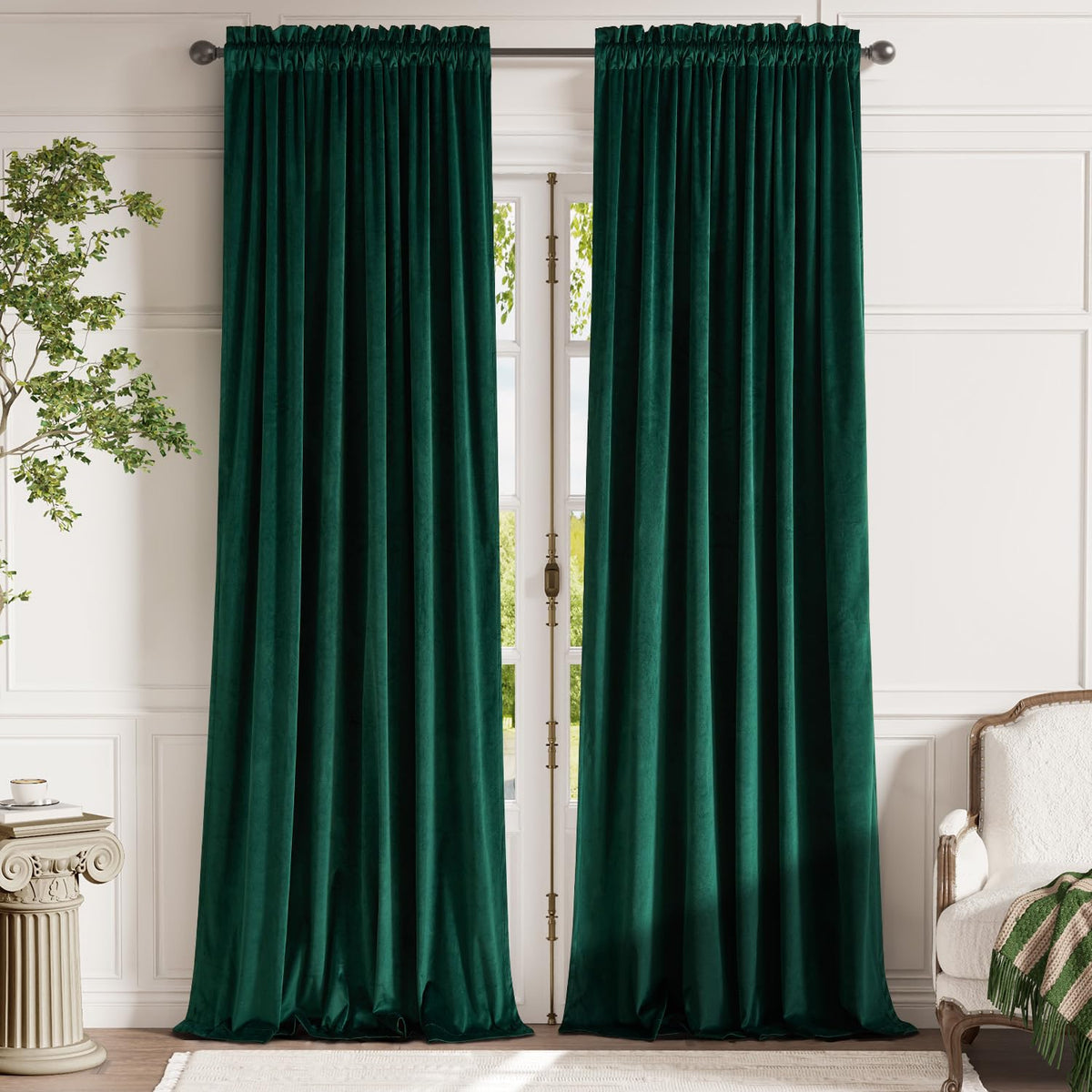 Lazzzy Emerald Green Velvet Curtains 96 Inches Long Room Darkening Drapes For Bedroom Living Window Treatments Rod Pocket 2 Panels W62 X L96