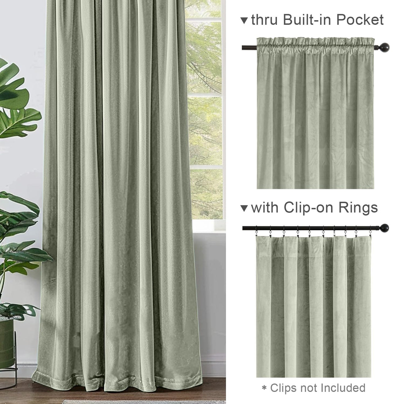 Lazzzy Grayish Green Velvet Curtains Room Darkening Thermal Insulated Curtains 120 Inch Length Window Drapes For Bedroom Living Room Super Soft Luxury Rod Pocket Window Treatment 2 Panels