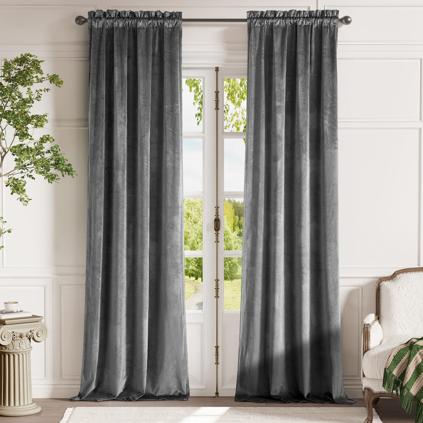 Lazzzy Grey Velvet Blackout Curtains 96 Inch Length Thermal Insulated Curtain Drapes For Bedroom Living Room Darkening Rod Pocket 2 Panels, W42 X L96