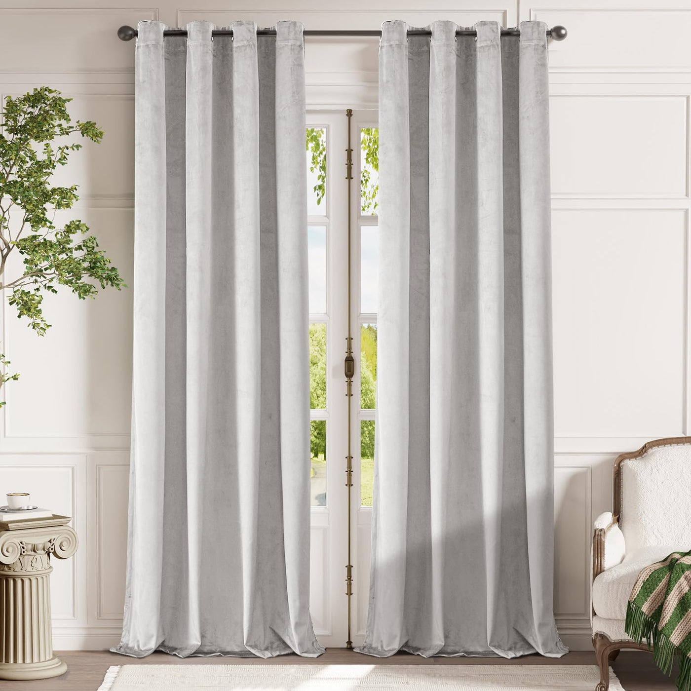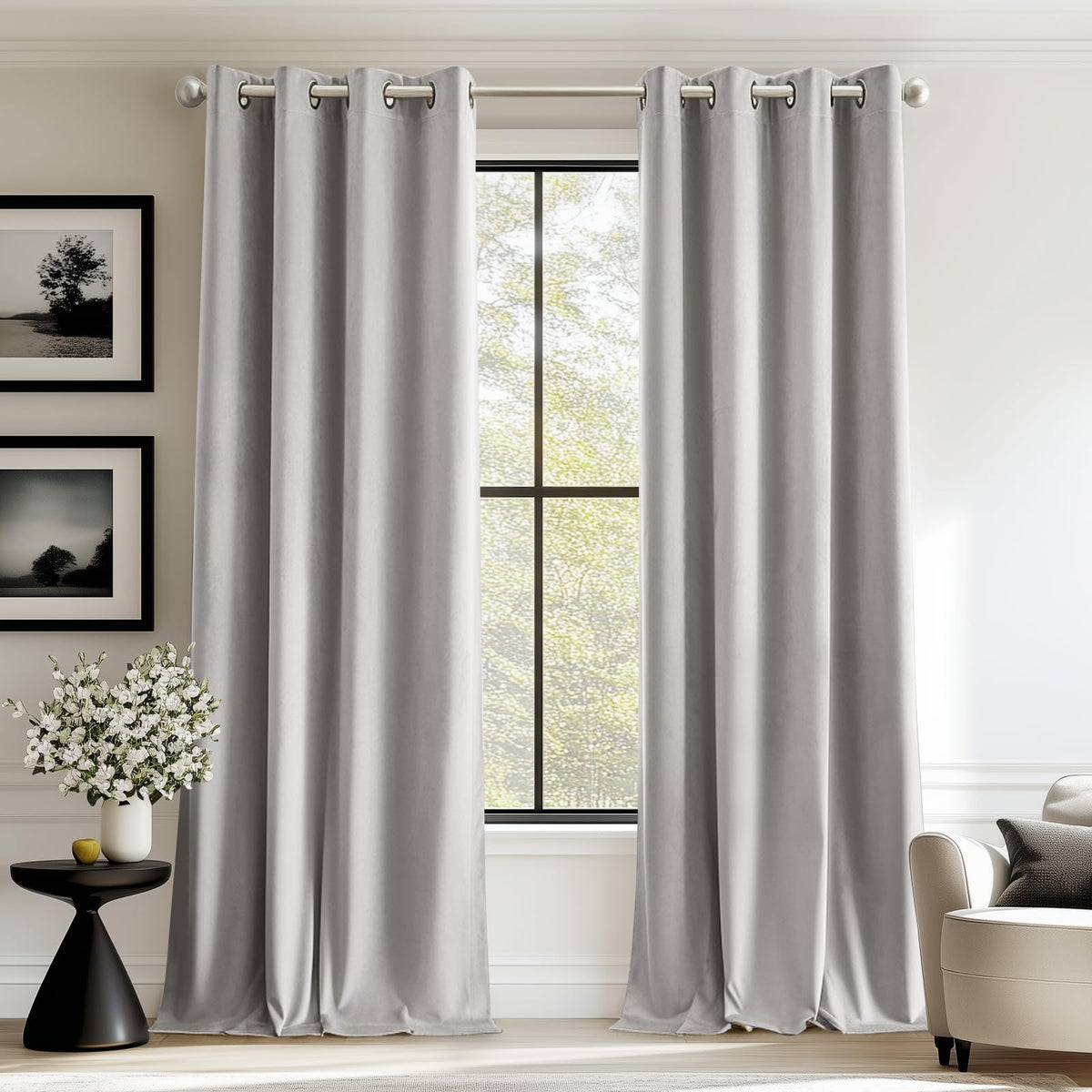 Lazzzy Light Gray Velvet Curtains Thermal Insulated Curtains 96 Inch Lenth Room Darkening Window Drapes For Bedroom Living Room Super Soft Luxury Window Treatment 2 Panels Grommet
