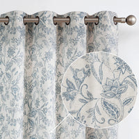 Lazzzy Linen Farmhouse Curtains For Living Room 84 Inch Length Floral Print Window Curtains Semi Sheer Drapes For Bedroom Countr