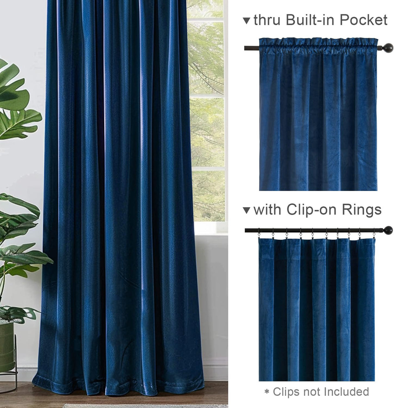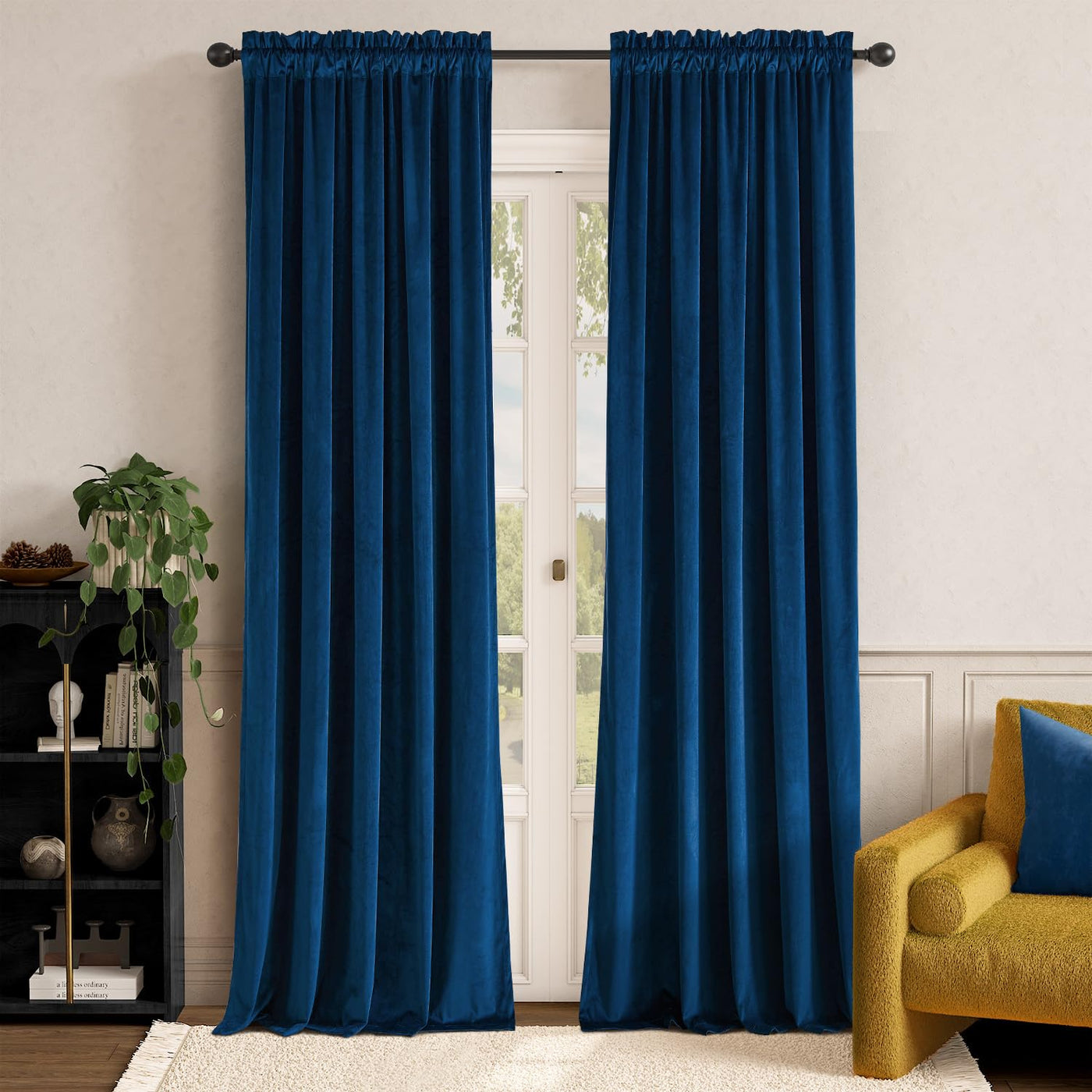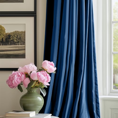 Lazzzy Navy Blue Velvet Curtains Room Darkening Thermal Insulated Curtains 108 Inch Long Window Drapes For Bedroom Living Room Super Soft Luxury Rod Pocket Window Treatment, 2 Panels
